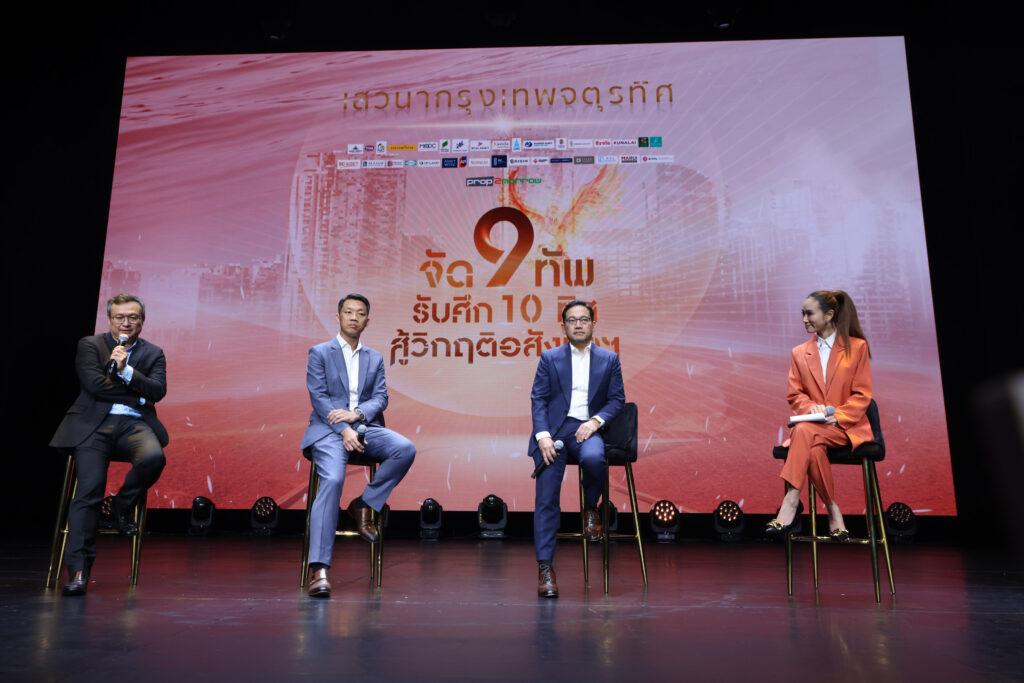 ภายในงานสัมมนา จัดเสวนา “กรุงเทพจตุรทิศ : จัด 9 ทัพ รับศึก 10 ทิศ สู้วิกฤติอสังหาฯ” มีผู้นำธุรกิจนักพัฒนาอสังหาฯชั้นนำระดับประเทศ เข้าร่วมในเวทีฉายความคิดเห็น แลกเปลี่ยนมุมมอง แนวโน้มของการเปลี่ยนแปลงและผลกระทบต่อธุรกิจอสังหาริมทรัพย์ จัดขึ้นโดย prop2morrow ณ โรงละครเคแบงก์สยามพิฆเนศ