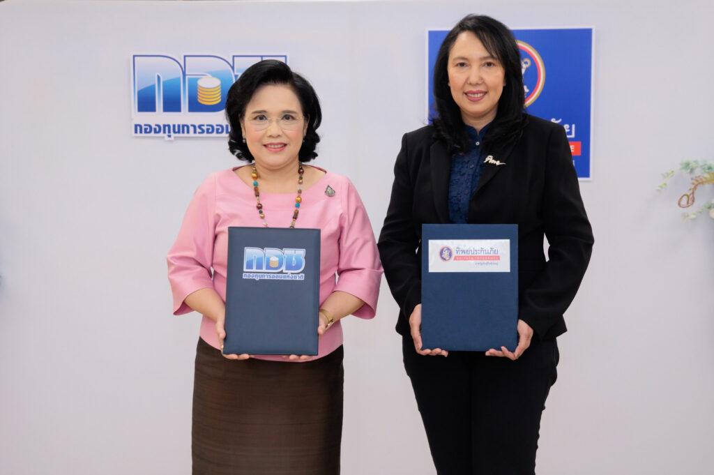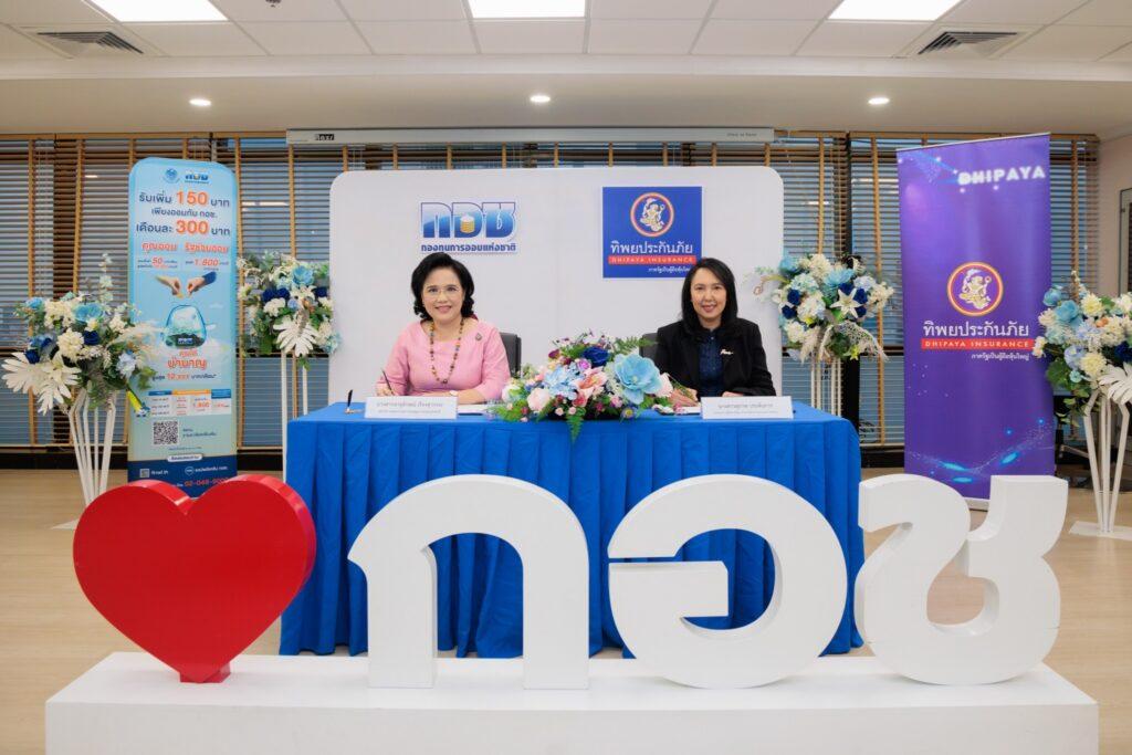 นางสาวสุภาพ ประดับการ รองกรรมการผู้จัดการใหญ่ ด้านการขายและการตลาด 1 บริษัท ทิพยประกันภัย จำกัด (มหาชน) และ นางสาวจารุลักษณ์ เรืองสุวรรณ เลขาธิการคณะกรรมการกองทุนการออมแห่งชาติ ร่วมลงนามบันทึกข้อตกลงความร่วมมือ (MOU) เพื่อให้ความรู้ความเข้าใจด้านการวางแผนการออม และด้านการวางแผนการประกันภัยแก่สมาชิกกองทุนฯ เสริมสร้างความมั่นคงทางการเงินและการจัดการความเสี่ยงภัยต่างๆ ให้กับสมาชิกกองทุนการออมแห่งชาติ ณ กองทุนการออมแห่งชาติ อาคาร เอส เอ็ม ทาวเวอร์