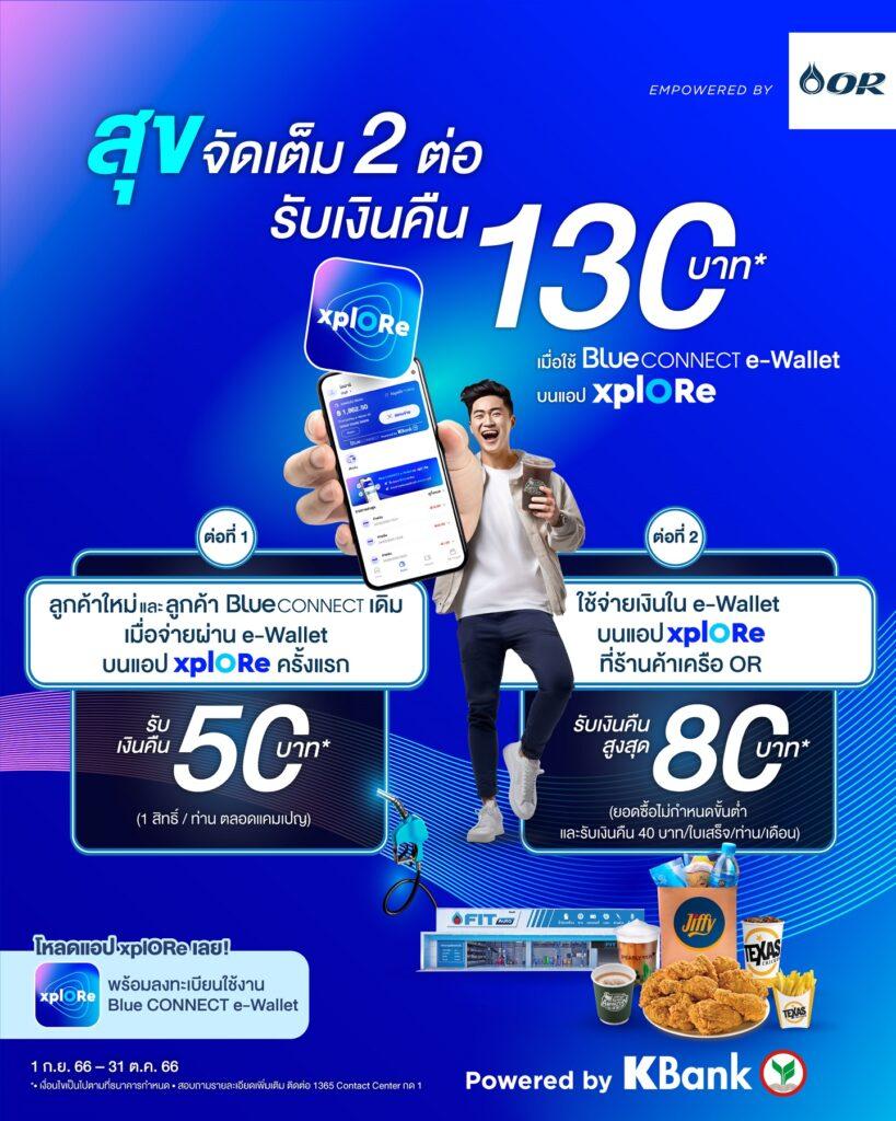 Blue CONNECT e-Wallet ชวนใช้จ่ายผ่านแอป xplOReมอบสุขจัดเต็ม 2 ต่อ รับเงินคืนสูงสุด 130 บาท