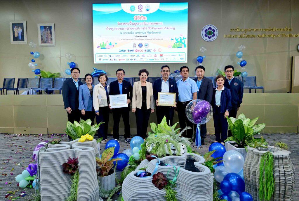 นายสุขธวัช พัทธวรากร ผู้อำนวยการทรัพยากรธรรมชาติและพันธกิจสังคม บริษัท ปูนซิเมนต์ไทย จำกัด (มหาชน) กล่าวว่า สำหรับการเปิดตัวโครงการฟื้นฟูปะการังด้วยฐานลงเกาะตัวอ่อนปะการัง 3D Concrete Printing บริเวณเกาะสะเก็ด ตำบลมาบตาพุด อำเภอเมือง จังหวัดระยอง โดยทาง กนอ. และมูลนิธิเพื่อการอนุรักษ์-ฟื้นฟูปะการังและชายหาด (มอป.) ในครั้งนี้ ทาง เอสซีจี รู้สึกยินดีเป็นอย่างยิ่งที่ได้มีส่วนร่วมในการสนับสนุนในโครงการดังกล่าว ซึ่งนวัตกรรมบ้านปะการังนี้ เหมาะเป็นแหล่งเพาะพันธุ์ปะการังและสัตว์น้ำ ผลิตจากปูนซีเมนต์รักษ์โลกที่เป็นมิตรต่อสิ่งมีชีวิตใต้ทะเล ที่ช่วยในการฟื้นฟูทรัพยากรท้องทะเลไทยได้อย่างยั่งยืน และจากความร่วมมือในครั้งนี้ เอสซีจี มุ่งหวังเป็นส่วนหนึ่งในการสร้างความมีส่วนร่วมจากพันธมิตรทางธุรกิจ เครือข่ายภาครัฐ ภาคประชาชน ภาควิชาการและสังคม ในการร่วมสนับสนุนอนุรักษ์เป็นพลังขับเคลื่อนให้เกิดความร่วมมือกันในอนาคตและสามารถขยายผล อย่างเป็นรูปธรรมได้จริง อันจะก่อให้เกิดความยั่งยืนในการพัฒนาและการดูแลรักษาทรัพยากรธรรมชาติถึงคนรุ่นต่อๆ ไป