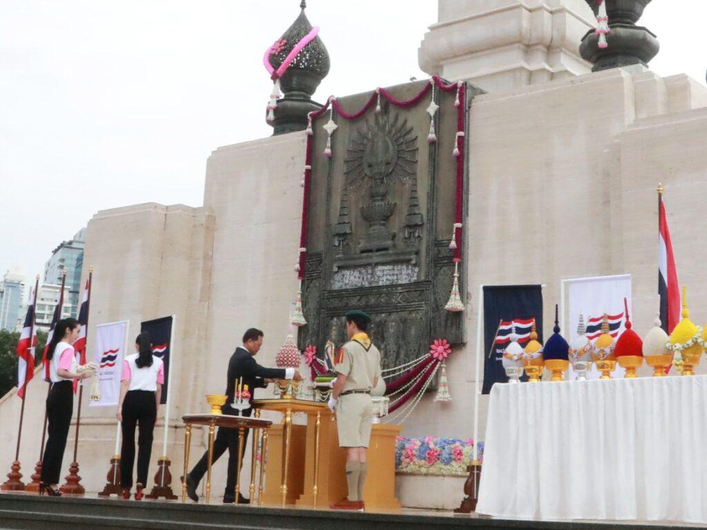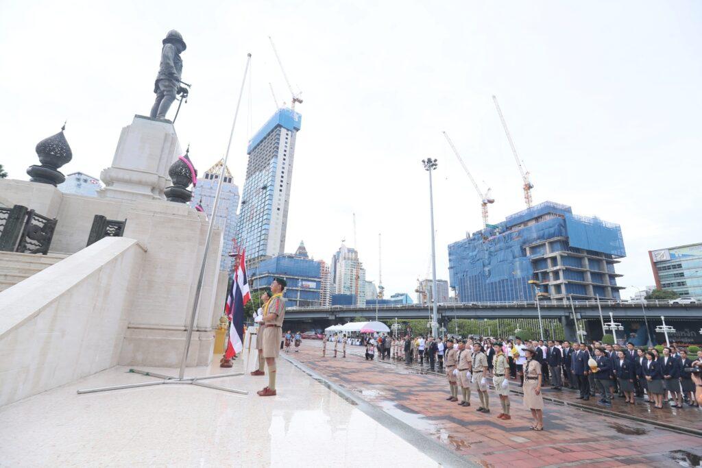 นายโชคชัย คุณาวัฒน์ รองผู้อำนวยการธนาคารออมสิน นำคณะผู้บริหาร และพนักงาน ร่วมกิจกรรมเคารพธงชาติและวางพานพุ่มน้อมรำลึกพระมหากรุณาธิคุณพระบาทสมเด็จพระมงกุฎเกล้าเจ้าอยู่หัว เนื่องในวันพระราชทานธงชาติไทย 28 กันยายน (Thai National Flag Day) ประจำปี 2566 เพื่อเป็นการสร้างความภาคภูมิใจของคนในชาติ และเป็นการน้อมรำลึกในพระมหากรุณาธิคุณของพระบาทสมเด็จพระมงกุฎเกล้าเจ้าอยู่หัว ที่ทรงพระราชทานธงไตรรงค์เป็นธงชาติไทย ซึ่งดำรงความเป็นเอกลักษณ์และความเป็นปึกแผ่นของประเทศไทยมาจนปัจจุบัน โดยมี พล.ต.ท.อรรถกฤษณ์ ธารีฉัตร กรรมการมูลนิธิพระบรมราชานุสรณ์ พระบาทสมเด็จพระมงกุฎเกล้าเจ้าอยู่หัว ในพระบรมราชูปถัมภ์ นายเชื้อพร รังควร รองเลขาธิการมูลนิธิเพชรรัตน-สุวัทนา และ รศ.ดร.ชัชพล ไชยพร รองประธานกรรมการมูลนิธิสถาบันการศึกษาในรัชกาลที่ 6 และสมเด็จฯ เจ้าฟ้าเพชรรัตนราชสุดาฯ รวมทั้ง ผู้แทนจากสำนักงานเขตปทุมวัน พิพิธภัณฑ์ธงชาติไทย สถานีตำรวจนครบาลลุมพินี วชิราวุธวิทยาลัย และสมาคมนักเรียนเก่าวชิราวุธวิทยาลัย ร่วมวางพานพุ่ม ณ ลานพระบรมราชานุสาวรีย์ พระบาทสมเด็จพระมงกุฎเกล้าเจ้าอยู่หัว สวนลุมพินี เมื่อวันที่ 28 กันยายน 2566
