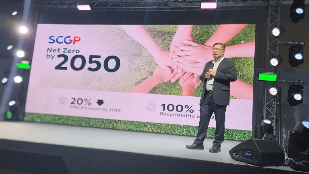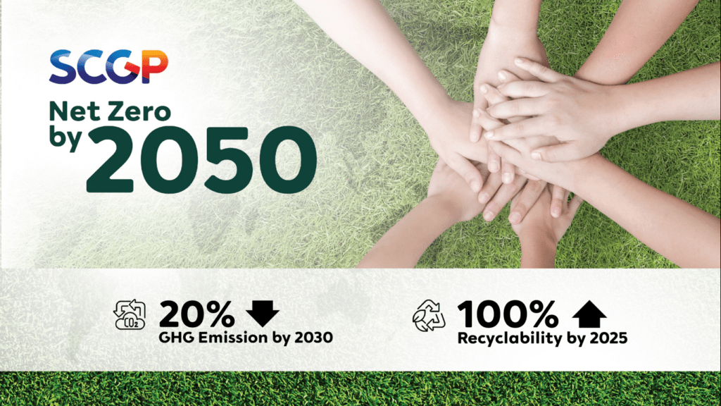 จากแนวทางการขับเคลื่อนธุรกิจของ SCGP ตามกรอบแนวคิด ESG ซึ่งมีแผนงานชัดเจนที่จะเพิ่มสัดส่วนบรรจุภัณฑ์เป็นมิตรกับสิ่งแวดล้อม ในปี 2025 ที่จะไปสู่เป้าหมายใช้บรรจุภัณฑ์รีไซเคิลและย่อยสลายได้ 100% และในปี 2050 ประกาศเป้าหมายปล่อยก๊าซเรือนกระจกสุทธิเป็นศูนย์ SCGP ได้พัฒนาเทคโนโลยีและแพลตฟอร์มดิจิทัลอย่างต่อเนื่องเพื่อขับเคลื่อนให้ถึงเป้าหมายความยั่งยืน
