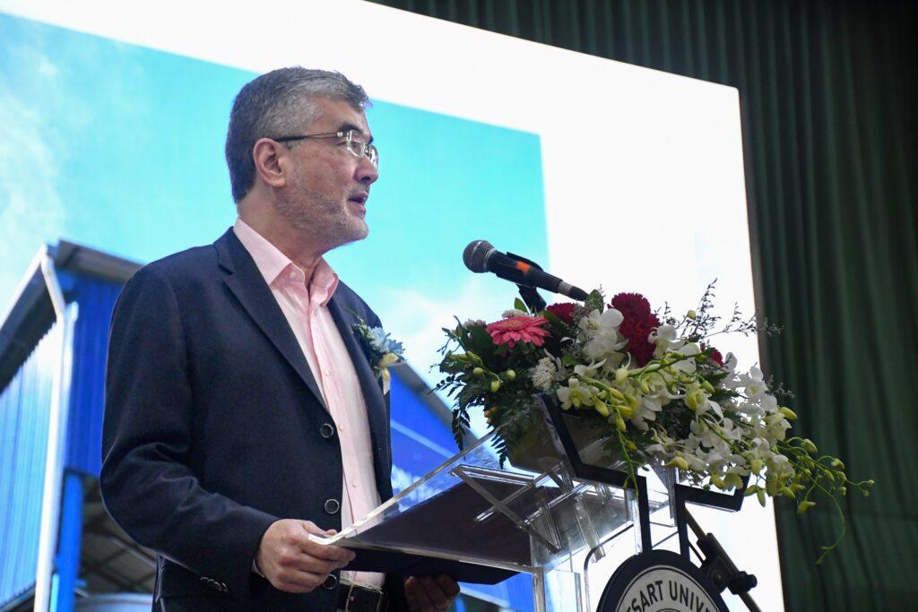 มร. สตีเฟ้นท์ อาร์ชเวิรท กล่าวว่า “เรารู้สึกยินดีเป็นอย่างยิ่งที่ได้รับเกียรติจากมหาวิทยาลัยเกษตรศาสตร์ วิทยาเขตศรีราชา ให้เข้าร่วมพิธีแต่งเครื่องแบบ ประดับเครื่องหมายชั้นปี แก่นักศึกษาพาณิชยนาวี ประจำปี 2566 ซึ่งตรงกับวันทางทะเลโลก โดยปีนี้ IMO ได้กำหนดให้ผู้มีส่วนเกี่ยวข้องในอุตสาหกรรมฯ ร่วมผลักดันการดำเนินงานตามอนุสัญญาระหว่างประเทศว่าด้วยการป้องกันมลพิษจากเรือ หรือ MARPOL อย่างต่อเนื่อง”