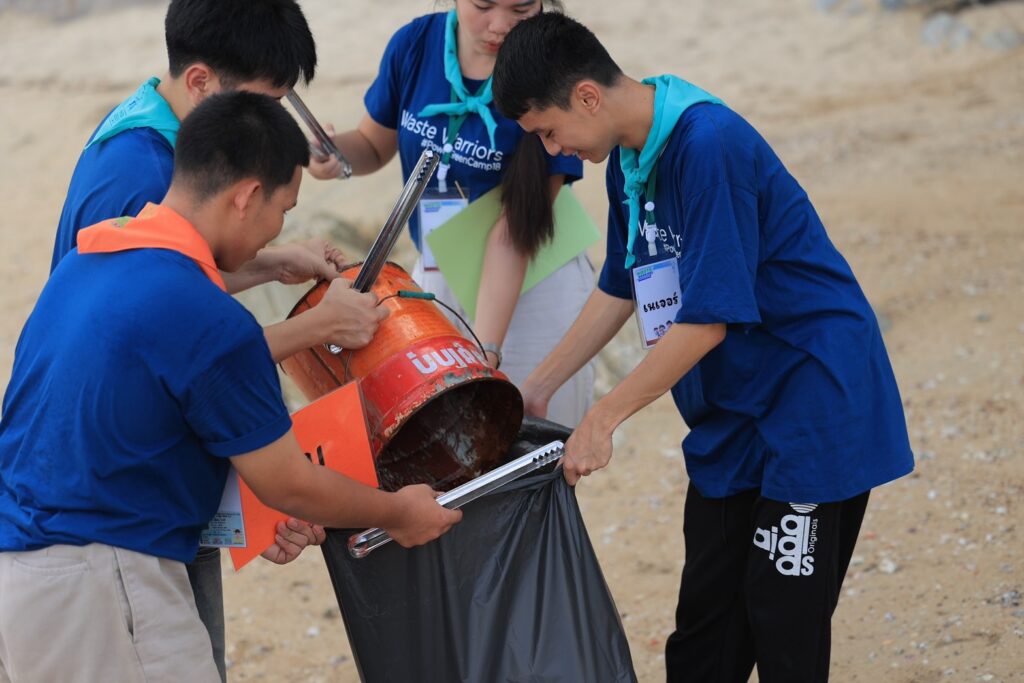 นอกจากการเรียนรู้ภาคทฤษฎีแล้ว เยาวชนทั้ง 50 คน ก็ได้ลงพื้นที่จริงเพื่อศึกษาปัญหาและแนวทางการจัดการปัญหาขยะที่หลากหลาย โดยค่ายฯ ร่วมกับมูลนิธิเทอร์ราไซเคิล ไทย (TerraCycle Thai Foundation) พาเยาวชนลงเรือออกสำรวจปัญหาขยะ เก็บขยะในพื้นที่ชุมชนคลองลาดพร้าวใจกลางกรุงเทพฯ มีการเรียนรู้การคัดแยกขยะก่อนเข้าสู่กระบวนการจัดการขยะอย่างถูกวิธี โดยกิจกรรมนี้มี แอนนา เสืองามเอี่ยม มิสยูนิเวิร์สไทยแลนด์ 2565 และ ‘ฑูตมือวิเศษ’ ผู้แทนการรณรงค์แคมเปญ ‘ไม่เทรวม’ ซึ่งเป็นโครงการด้านการจัดการขยะภายใต้ความร่วมมือของสำนักสิ่งแวดล้อมและภาคีมือวิเศษกรุงเทพ เข้ามาร่วมทำกิจกรรมกับน้อง ๆ ภายในค่ายฯ และร่วมขับเคลื่อนประเด็นด้านสิ่งแวดล้อมไปด้วยกัน นอกจากนี้เยาวชนยังได้ร่วมสำรวจ ‘ขยะทะเล’ ทำกิจกรรมเก็บขยะชายหาดพร้อมทั้งเรียนรู้การปนเปื้อนของขยะพลาสติก ณ เกาะสีชัง จังหวัดชลบุรี โดยมีเซเลบริตี้คนรุ่นใหม่ใส่ใจสิ่งแวดล้อมอย่าง เน๋ง-ศรัณย์ นราประเสริฐกุล และ เอิ๊ต-ภัทรวี ศรีสันติสุข ร่วมทริปในครั้งนี้ด้วย