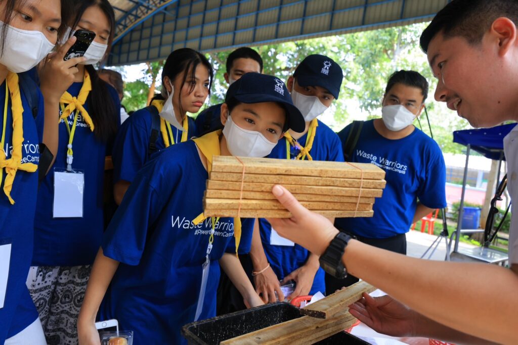 โครงการค่าย “เพาเวอร์กรีน” เน้นออกแบบกิจกรรมการเรียนรู้ “วิทยาศาสตร์สิ่งแวดล้อม – เรียนรู้สู่การปฏิบัติ” ประเดิมค่ายฯ ด้วยการเปิดห้องเรียนวิทยาศาสตร์ ปูพื้นฐานภาคทฤษฎีเพื่อให้เข้าใจปัญหาขยะและแนวทางแก้ไขตั้งแต่ต้นทางไปจนถึงปลายทาง รวมถึงการนำเทรนด์ 3 Greens: Green Cloud – Green Tech – Green Influencer มาประยุกต์ใช้ให้เกิดประโยชน์กับกิจกรรมต่าง ๆ ในค่าย ซึ่งหัวข้อการเรียนรู้ภาคทฤษฎีที่น่าสนใจ ประกอบด้วย การทำความเข้าใจวัฏจักรชีวิตของผลิตภัณฑ์ (Life Cycle Waste Management) การฝึกใช้ระบบภูมิสารสนเทศ (Geographic Information System : GIS) ซึ่งเป็นกระบวนการทำงานเกี่ยวกับข้อมูลเชิงพื้นที่ด้วยระบบคอมพิวเตอร์ที่นำมาใช้งานเพื่อจัดการปัญหาขยะ อีกทั้งยังมีพี่ ๆ ทีมงานผู้อยู่เบื้องหลังเพจ “Go Green Girls” อินฟลูเอนเซอร์สายสิ่งแวดล้อม มาร่วมฝึกสร้างคอนเทนต์ และชวนเรียนรู้เทคนิคและประสบการณ์ตรงในฐานะผู้ผลิตสื่อ ที่ขับเคลื่อนประเด็นด้านสิ่งแวดล้อม ปูทางสู่การเป็น “กรีนอินฟลูเอนเซอร์” เพื่อเป็นกระบอกเสียงเล็ก ๆ ในการสร้างการเปลี่ยนแปลงที่ยิ่งใหญ่ ก่อนจะได้รวมทีมพัฒนาโครงงานวิทยาศาสตร์สิ่งแวดล้อมจากการเรียนรู้ตลอดทั้งค่ายต่อไป