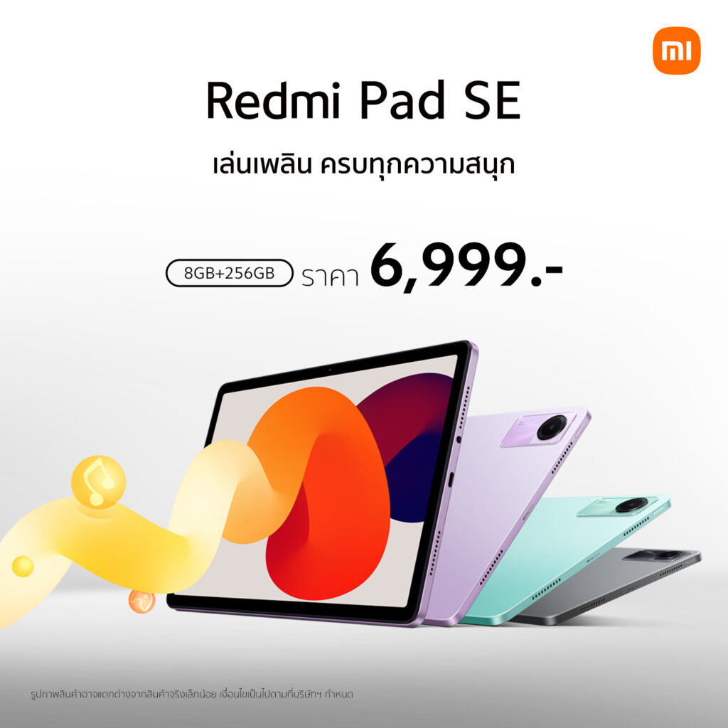 เสียวหมี่วางจำหน่าย Redmi Pad SE แท็บเล็ตที่ผสมผสานการใช้งานและสุนทรียภาพได้อย่างลงตัว ในขนาดความจุใหม่ที่ใหญ่ขึ้นกว่าเดิม 8GB+256GB ในราคาเพียง 6,999 บาท พิเศษสำหรับลูกค้าที่ซื้อ Redmi Pad SE รุ่นความจุ 8GB+256GB ในระหว่างวันที่ 26 ตุลาคม 2566 – 30 พฤศจิกายน 2566 รับฟรี! Redmi Pad SE Case มูลค่า 1,390 บาท สามารถเป็นเจ้าของ Redmi Pad SE รุ่นความจุ 8GB+256GB ได้ที่ Xiaomi Store และร้านตัวแทนจำหน่ายที่ร่วมรายการทั่วประเทศ และช่องทางออนไลน์แพลตฟอร์มที่ร่วมรายการ