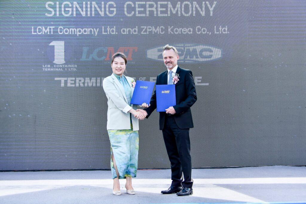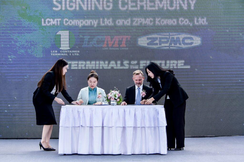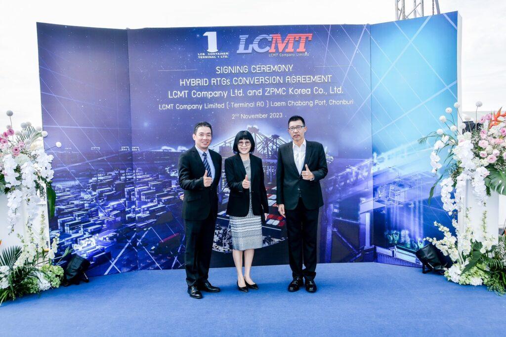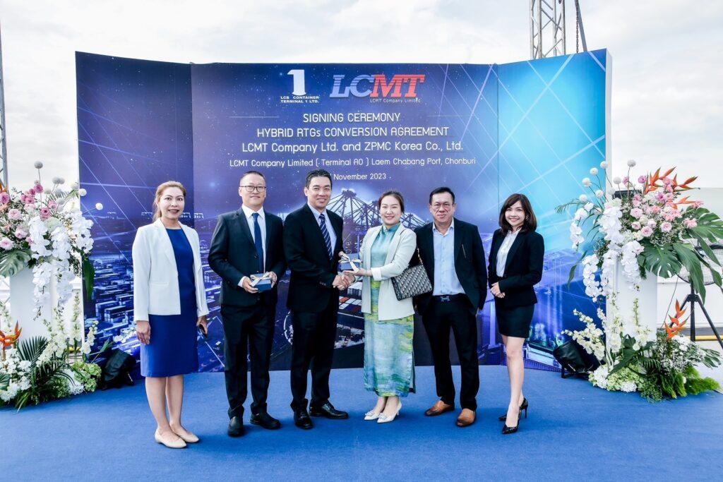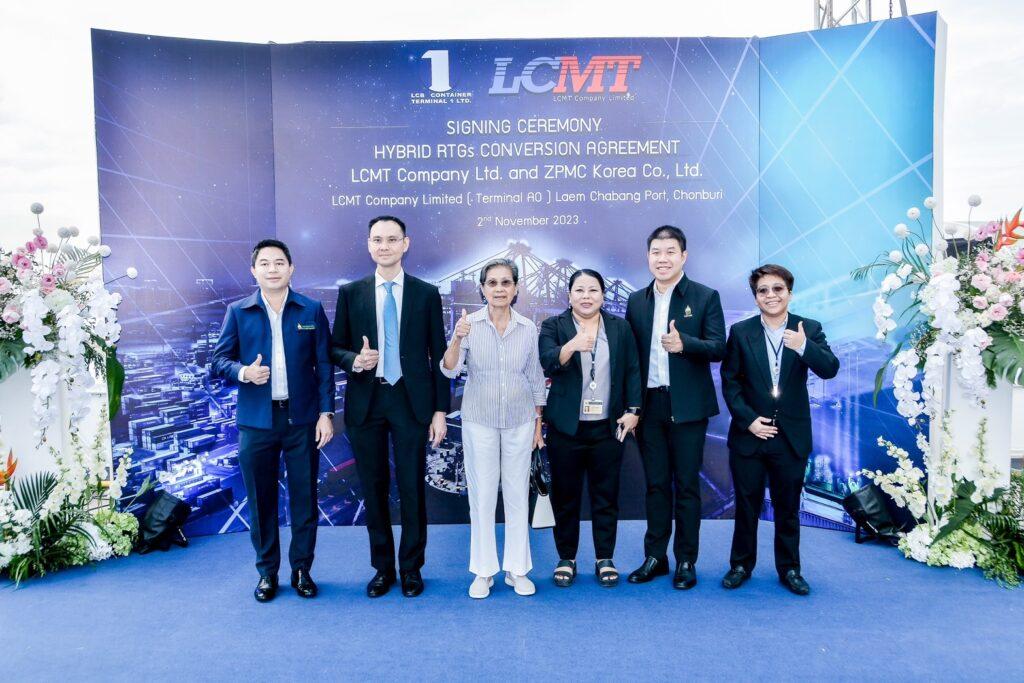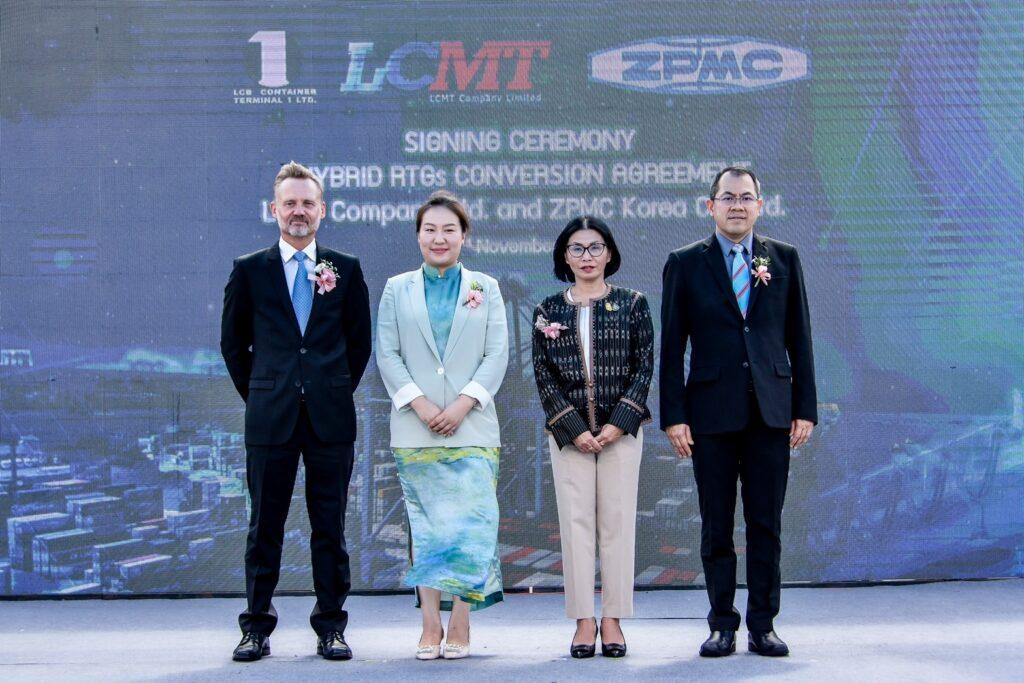 นางมนพร เจริญศรี รัฐมนตรีช่วยว่าการกระทรวงคมนาคม ประธานในพิธี เเละ นายเกรียงไกร ไชยศิริวงศ์สุข ผู้อำนวยการการท่าเรือแห่งประเทศไทย ร่วมงาน พิธีลงนามสัญญา เพื่อเปลี่ยนเครื่องจักรสำหรับยกตู้สินค้าในท่าเรือ (RTG) เป็นระบบไฟฟ้าแบบไฮบริด ระหว่าง กลุ่มบริษัท แอลซีบีวัน / บริษัท แอลซีเอ็มที จำกัด โดย Mr. Kaare Spange (CEO) บริษัท LCMT Company Limited ผู้ประกอบการท่าเทียบเรือ ได้เซ็นสัญญาลงนามร่วมกับบริษัท ZPMC Korea โดย Ms. Lorelai Yuan ประธานเจ้าหน้าที่บริหาร บริษัท ZPMC Korea ในการปรับเปลี่ยนเครื่องจักรยกขนตู้สินค้าในท่าเรือ หรือ อาร์ทีจี จากการใช้น้ำมันเป็นเชื้อเพลิง มาเป็นระบบไฟฟ้าแบบไฮบริด เพื่อเป็นการ ช่วยลดปริมาณก๊าซเรือนกระจกในกระบวนการให้บริการท่าเทียบเรือให้กับประเทศไทยได้มากกว่า 1.5 ล้านกิโลซีโอทูต่อปี ณ ณบริษัท แอล ซี เอ็ม ที จำกัด ท่าเรือแหลมฉบัง จ.ชลบุรี