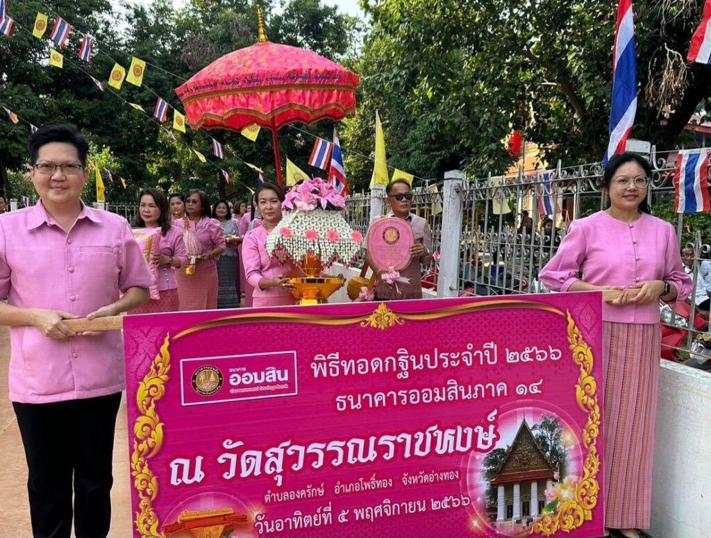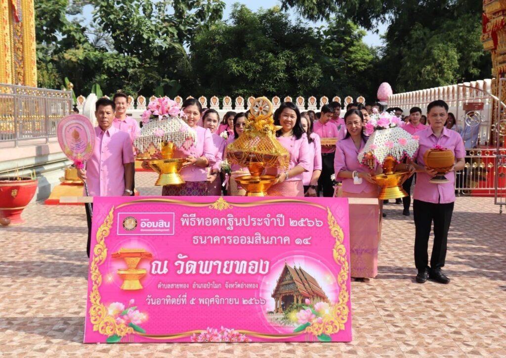 นายวิทัย รัตนากร ผู้อำนวยการธนาคารออมสิน เป็นประธานในพิธีทอดกฐิน ณ วัดพายทอง อ.ป่าโมก จ.อ่างทอง ซึ่งเป็น 1 ใน 142 วัด ที่ธนาคารเป็นเจ้าภาพในการถวายกฐินตกแก่วัดที่ไม่มีผู้ถวายผ้ากฐินในปี 2566 และวัดสุวรรณราชหงษ์ อ.โพธิ์ทอง เพื่อสมทบทุนสร้างอาคารปฏิบัติธรรมหลังใหม่ บูรณะศาลาการเปรียญและเมรุ ทั้งนี้ เพื่อร่วมเป็นส่วนหนึ่งในการส่งเสริมและทำนุบำรุงพระพุทธศาสนาให้เจริญมั่นคงถาวรสืบไป โดยมีคณะผู้บริหาร พนักงานธนาคารออมสิน หัวหน้าส่วนราชการ ข้าราชการในพื้นที่ ตลอดจนพุทธศาสนิกชนผู้มีจิตศรัทธาร่วมพิธี เมื่อเร็วๆ นี้