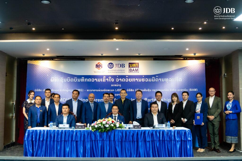 นายบัณฑิต อนันตมงคล ประธานเจ้าหน้าที่บริหาร นายพงศธร มณีพิมพ์  รองประธานเจ้าหน้าที่บริหาร นายณสุ จันทร์สม ผู้ช่วยประธานเจ้าหน้าที่บริหาร สายกลยุทธ์และพัฒนาธุรกิจ  พร้อมคณะผู้บริหาร บริษัทบริหารสินทรัพย์  กรุงเทพพาณิชย์ จำกัด (มหาชน) หรือ BAM  ร่วมพิธีลงนามบันทึกความเข้าใจ (MOU) โดยมี  Mr. Ekaphan PHAPHITHAK ประธานสภาบริหาร  Mr. Vettathong PHOMBANDITH  Managing Director จาก SMG Group Sole Co.,LTD (SMG)  ซึ่งเป็นธุรกิจบริษัทโฮลดิ้ง และ Mr. Sakhone YORPHANXAY  Managing Director จาก Joint Development Bank (JDB) ธนาคารเอกชนรายแรกในลาวซึ่งเป็นบริษัทในเครือ SMG เพื่อศึกษาโอกาสความเป็นไปได้ทางธุรกิจใน สปป. ลาว ร่วมกัน ณ สำนักงานใหญ่ JDB, Vientiane, Laos