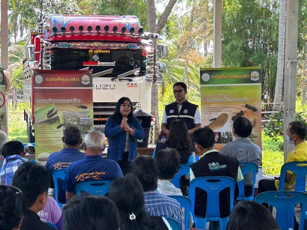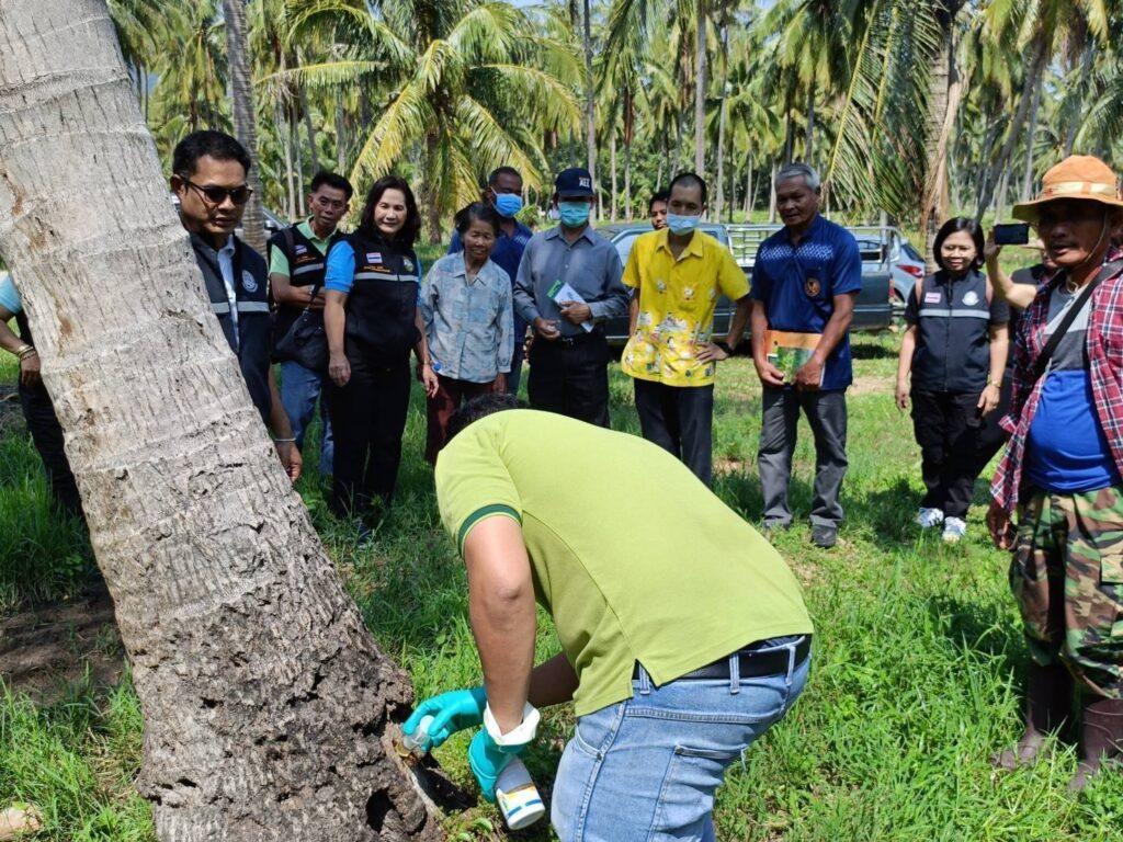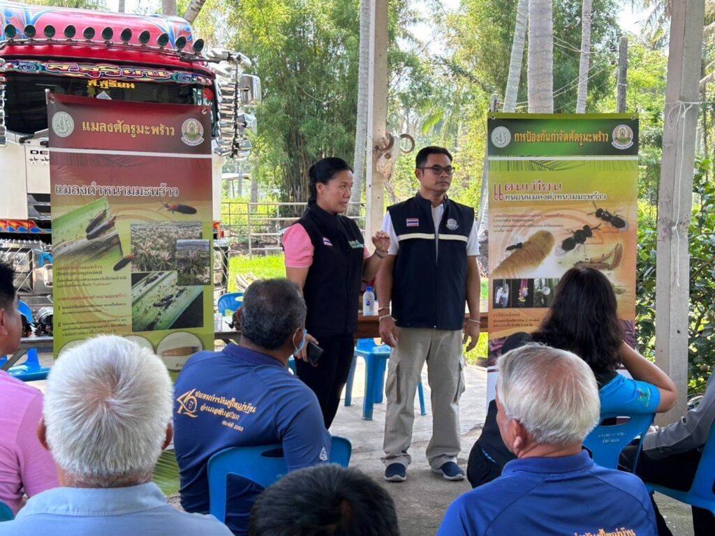 ดร.ภัสชญภณ หมื่นแจ้ง รองอธิบดีกรมวิชาการเกษตร เปิดเผยว่า ได้รับมอบหมายจากนายระพีภัทร์ จันทรศรีวงศ์ อธิบดีกรมวิขาการเกษตร ลงพื้นที่ติดตามสถานการณ์การระบาดหนอนหัวดำมะพร้าวและแมลงดำหนามมะพร้าวในพื้นที่มีการระบาดของแมลงศัตรูมะพร้าว โดยในจังหวัดประจวบคีรีขันธ์มีพื้นที่ปลูกมะพร้าว 358,544 ไร่ ซึ่งเป็นพืชหลักของเกษตรกร จากข้อมูลการระบาดของแมลงศัตรูมะพร้าวที่สำคัญ ปัจจุบันพบว่ามีการระบาดของหนอนหัวดำมะพร้าว ระบาด 7,585 ไร่ โดยระบาดรุนแรง 166 ไร่ และพบแมลงดำหนามมะพร้าว ระบาด 8,040 ไร่ ระบาดรุนแรง 78 ไร่