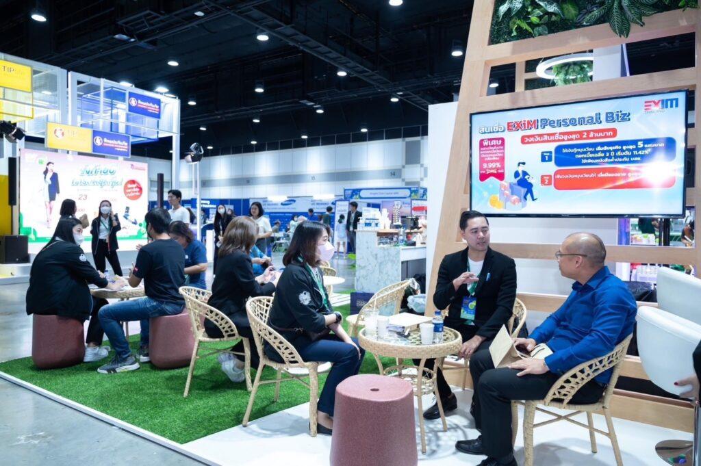 EXIM BANK ร่วมออกบูทภายใต้แนวคิด “EXIM Green Start” ในงาน Money Expo 2023 Bangkok Year-End ระหว่างวันที่ 14-17 ธันวาคม 2566 ณ ศูนย์การประชุมแห่งชาติสิริกิติ์ นำเสนอผลิตภัณฑ์ทางการเงินและโปรโมชันพิเศษ! พลาดไม่ได้! ผลิตภัณฑ์ใหม่เพื่อเป็นของขวัญรับปีมังกรทองสำหรับผู้ประกอบการส่งออกไทย “สินเชื่อเอ็กซิมเริ่มต้นส่งออก (EXIM First Step Export Financing)” สำหรับผู้ประกอบการเริ่มต้นส่งออก วงเงินหมุนเวียนสูงสุด 3 ล้านบาท อัตราดอกเบี้ยเพียง 6.75% ต่อปี และกรณีต้องการวงเงินรับซื้อตั๋วส่งออก สามารถขอรับการสนับสนุนวงเงินสูงสุดถึง 10 ล้านบาท อัตราดอกเบี้ย/อัตรารับซื้อลดเพียง 5.75% ต่อปี พิเศษ! ลงทะเบียนในงาน ลดอัตราดอกเบี้ยปีแรกอีก 0.25% ต่อปี