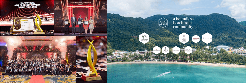 มอนท์เอซัวร์ (MontAzure) ภูเก็ต อาณาจักรมิกซ์ยูสซูเปอร์ไฮเอนด์บนทำเลระดับพรีเมี่ยมของเกาะภูเก็ต “หาดกมลา” แสดงศักยภาพโครงการที่พร้อมเดินหน้าสู่การเป็น “The Ultimate Beachfront Community in Thailand and Asia” คว้ารางวัลใหญ่จากเวที PropertyGuru Asia Property Awards 2023 โดยได้รับรางวัล Winner ประเภท Best Mixed Use Developer (Thailand)