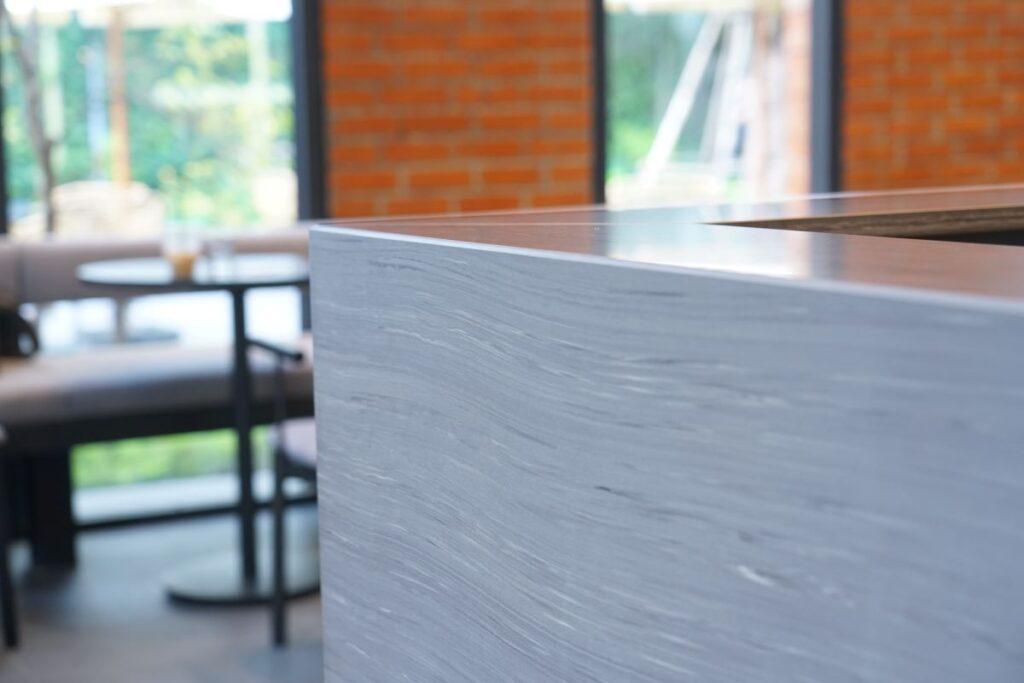 “องค์ประกอบในเรื่องความสวยงามบน Countertop จึงเป็นวัสดุตกแต่งที่สำคัญส่วนหนึ่งที่เราให้ความสำคัญมากเป็นพิเศษ GEOLUXE นับเป็น Countertop ที่ตอบโจทย์เราได้ชัดเจน ตั้งแต่สาขาแรกที่ใช้ คือสาขา เทอร์มินัล 21 พระราม 3 และที่เซนทรัล ลาดพร้าว จนมาถึง Bottomless S33 ซึ่งเป็นสาขาใหม่ล่าสุด ที่ครั้งนี้เราอยากให้ลูกค้าได้สนุกกับสีสันในแบบฉบับ Bottomless เพิ่มขึ้น จึงเลือกใช้ GEOLUXE Honed Surface Collection สี Natural Touch of Beauty is Luxury ของ GEOLUXE ที่ดึงเอาเสน่ห์ของลวดลายและผิวสัมผัสใกล้เคียงหินอ่อนธรรมชาติมากที่สุด พร้อมคุณสมบัติที่ไม่ดูดซึมคราบในทันที ช่วยลดปัญหาการจัดการสิ่งตกค้าง หรือคราบสกปรกบนเคาน์เตอร์ที่อาจก่อให้เกิดคราบฝังแน่นหากไม่สามารถจัดการได้ทันท่วงทีได้นานถึง 24 ชั่วโมง สามารถทนกรดธรรมชาติ และทนทานความร้อนได้สูงโดยไม่ทำให้เกิดรอยไหม้ ทำความสะอาดง่าย เพื่อให้บาริสต้าได้สนุกกับการชงกาแฟได้เต็มที่ตลอดการทำงานบนเคาน์เตอร์ บาร์ ก่อนส่งมอบเมนูสุดพิเศษให้ลูกค้า ได้สัมผัสถึงความสุขที่เชื่อมโยงถึงกันแล้ว