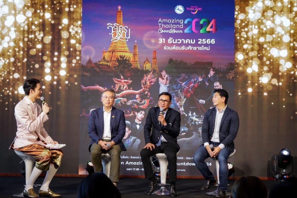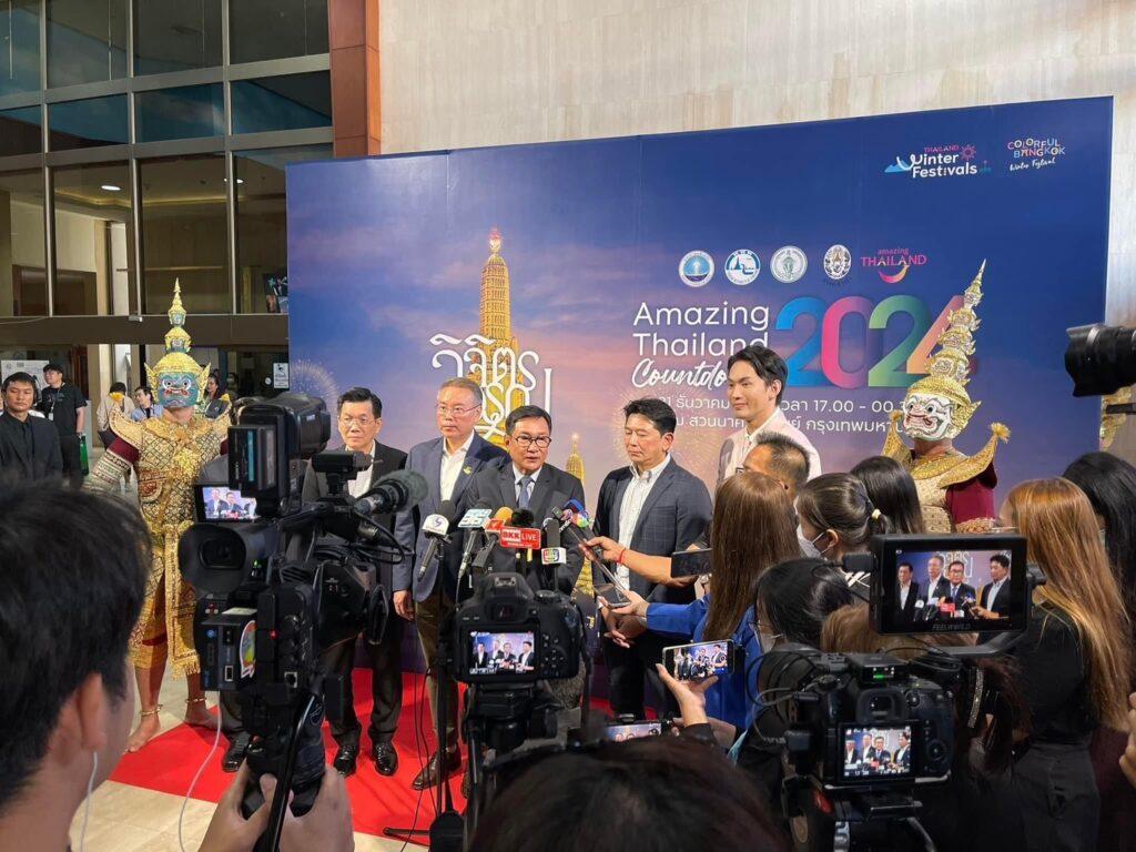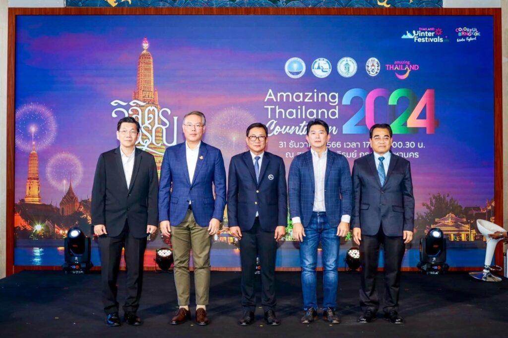 การท่องเที่ยวแห่งประเทศไทย (ททท.)โดยนายอภิชัย ฉัตรเฉลิมกิจ รองผู้ว่าการด้านสินค้าและธุรกิจท่องเที่ยว การท่องเที่ยวแห่งประเทศไทย ประธานในงานแถลงข่าวการจัดงาน “Amazing Thailand Countdown 2024” ประเทศไทย พร้อมด้วย นายกันตภณ ผาณิตรัตน์ ผู้อำนวยการอาวุโส กลุ่มงานการตลาดสาขาและบริหารงานลูกค้า บริษัท เซ็นทรัลพัฒนา จำกัด (มหาชน) และนายสุพจน์ ชัยวัฒน์ศิริกุล กรรมการผู้จัดการ บริษัท ไอคอนสยาม จำกัด ให้เกียรติร่วมงานฯ เชิญชวนสัมผัสความวิจิตรตระการตาแสงแรกแห่งอรุณรุ่งของกรุงสยามที่จะส่งมอบความสุขต้อนรับวาระดิถีขึ้นปีใหม่ 2567 ในพื้นที่หลักสวนนาคราภิรมย์ กรุงเทพมหานคร ซึ่งปีนี้ ททท. ยังได้ร่วมจัดกิจกรรมในจังหวัดนครราชสีมา และสนับสนุนการจัดงานในพื้นที่ต่าง ๆ ทั่วประเทศ คาดว่าจะสร้างรายได้หมุนเวียนรวม 5.4 หมื่นล้านบาท
