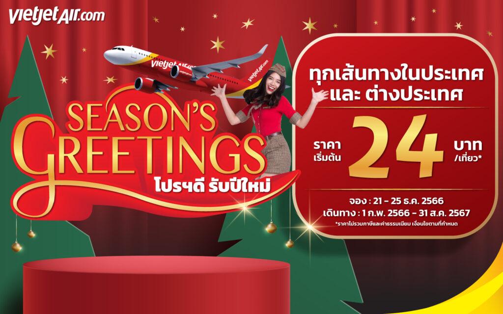 สายการบินไทยเวียตเจ็ทฉลองช่วงเวลาแห่งความสุขด้วยโปรโมชั่น “โปรดีฯ รับปีใหม่ (Season’s Greetings)” เสนอบัตรโดยสารราคาพิเศษ เริ่มต้นเพียง 24 บาท (ราคาไม่รวมภาษีและค่าธรรมเนียม) สำหรับเดินทางบนเครือข่ายเส้นทางบินภายในประเทศและระหว่างประเทศของไทยเวียตเจ็ท สามารถสำรองบัตรโดยสารได้ระหว่างวันที่ 21 – 25 ธันวาคม 2566 ใช้เดินทางได้ระหว่างวันที่ 1 กุมภาพันธ์ – 31 สิงหาคม 2567 (ยกเว้นวันหยุดนักขัตฤกษ์) ที่ www.vietjetair.com
