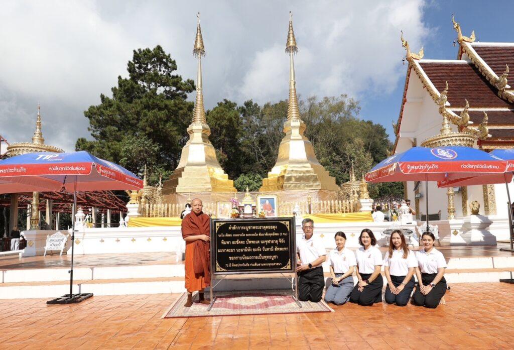คุณวิชชุดา ไตรธรรม ที่ปรึกษากรรมการผู้จัดการใหญ่ บมจ.ทิพยประกันภัย นำหน่วยหนุมานทิพยจิตอาสา จัดโครงการสร้างบุญมหากุศล “ พลังบุญทิพยร่วมสร้าง ครั้งที่ 219 ” เพื่อน้อมอุทิศถวายเป็นพระราชกุศลแด่พระบาทสมเด็จพระบรมชนกาธิเบศร มหาภูมิพลอดุลยเดชมหาราช บรมนาถบพิตร และสมเด็จพระเจ้าพี่นางเธอ เจ้าฟ้ากัลยาณิวัฒนา กรมหลวงนราธิวาสราชนครินทร์ โดยสักการะสะดือเมืองประจำจังหวัดเชียงราย 109 หลัก และได้นิมนต์พระภิกษุสงฆ์มาเจริญพระพุทธมนต์ ถวายจตุปัจจัยไทยธรรม พร้อมกันนี้ยังได้มอบป้ายคำสักการบูชาพระธาตุดอยตุงอีกด้วย ณ วัดพระธาตุดอยตุง จ.เชียงราย