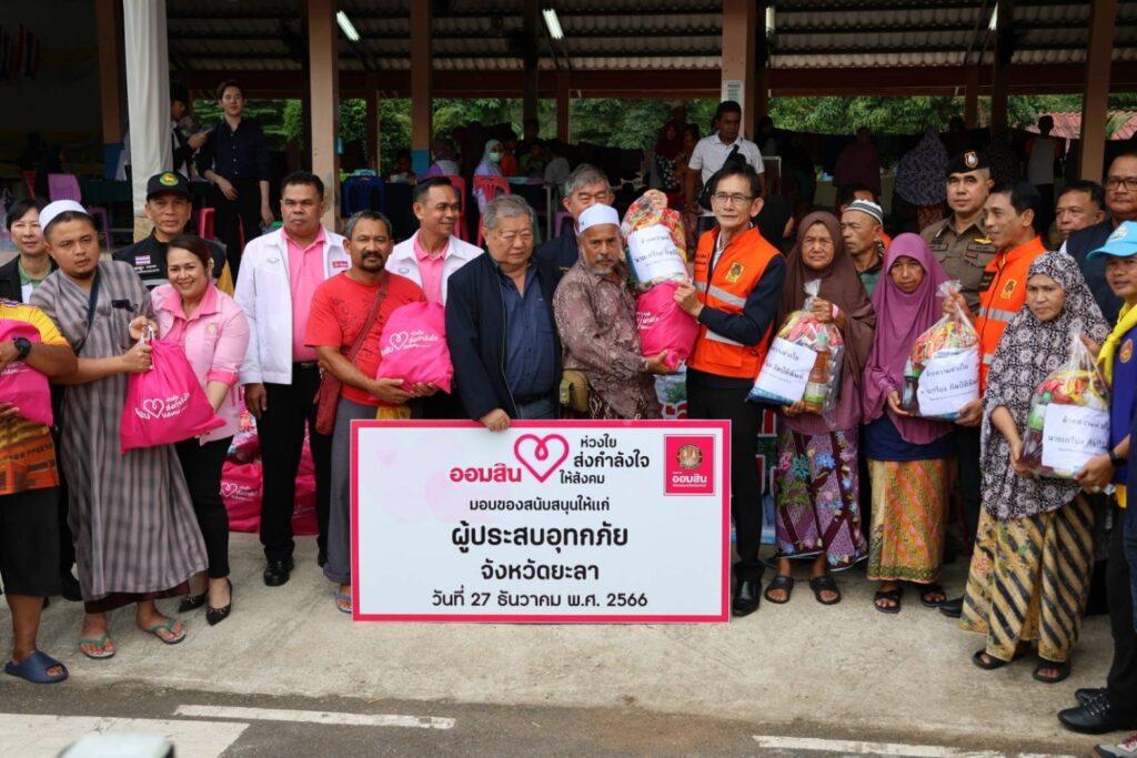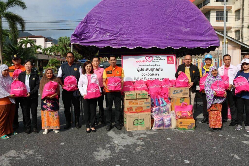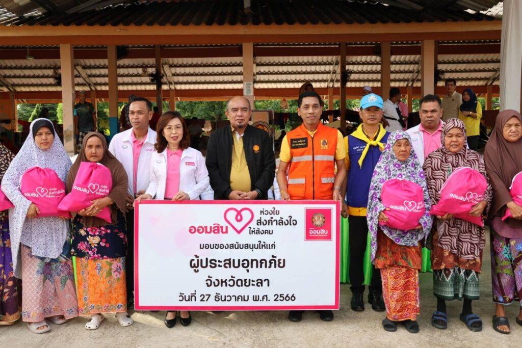 นายวิทัย รัตนากร ผู้อำนวยการธนาคารออมสิน เปิดเผยว่า จากสถานการณ์ภัยพิบัติน้ำท่วมที่เกิดขึ้นอยู่ขณะนี้ ใน 3 จังหวัดชายแดนภาคใต้ ยะลา ปัตตานี และนราธิวาส ประชาชนได้รับความเดือดร้อน ครอบคลุมพื้นที่ความเสียหายกว่า 90,000 ไร่ นั้น ธนาคารออมสิน ได้พิจารณาให้ความช่วยเหลือเป็นการเร่งด่วน เพื่อบรรเทาความเดือดร้อนเฉพาะหน้า โดยการสนับสนุนภารกิจของศูนย์ช่วยเหลือผู้ประสบอุทกภัย อำเภอระแงะ จังหวัดนราธิวาส และอำเภอรามัน จังหวัดยะลา มอบสิ่งของช่วยเหลือเบื้องต้น มูลค่ารวม 2,000,000 บาท ได้แก่ ถุงยังชีพ 2,000 ชุด และเครื่องอุปโภคบริโภค สิ่งของเครื่องใช้ที่จำเป็น อาทิ เครื่องนอน เครื่องนุ่งห่ม พัดลม ข้าวสาร และน้ำดื่ม รวมถึงจัดหาอาหาร 3 มื้อแก่ผู้ประสบภัย โดยการมอบความช่วยเหลือเฉพาะหน้าดังกล่าวมีนายเกรียง กัลป์ตินันท์ รัฐมนตรีช่วยว่าการกระทรวงมหาดไทย นายอำพล พงศ์สุวรรณ ผู้ว่าราชการจังหวัดยะลา และนายวิมุตติ อำนักมณี นายอำเภอระแงะ ตัวแทนผู้ว่าราชการจังหวัดนราธิวาส เป็นผู้รับมอบ