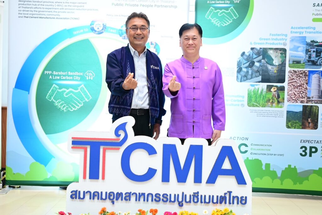 ด้าน ดร.ชนะ ภูมี นายกสมาคมอุตสาหกรรมปูนซีเมนต์ไทย (TCMA) กล่าวว่า TCMA ร่วมเป็นส่วนหนึ่งในการขับเคลื่อน “PPP-Saraburi Sandbox” ซึ่งเป็นการพัฒนารูปแบบความร่วมมือทำงานในเชิงพื้นที่ (Area Base) ที่เปิดโอกาสให้ทุกภาคส่วนเข้ามาร่วมกันทำงาน และแก้ไขปัญหาร่วมกัน เพื่อขับเคลื่อนจังหวัดสระบุรีเปลี่ยนผ่านสู่เมืองคาร์บอนต่ำ รวมถึงด้านอุตสาหกรรมสีเขียว ด้านการจัดการของเสีย ด้านการเกษตรคาร์บอนต่ำ และด้านการเพิ่มพื้นที่สีเขียว ให้เกิดขึ้นอย่างเป็นรูปธรรม