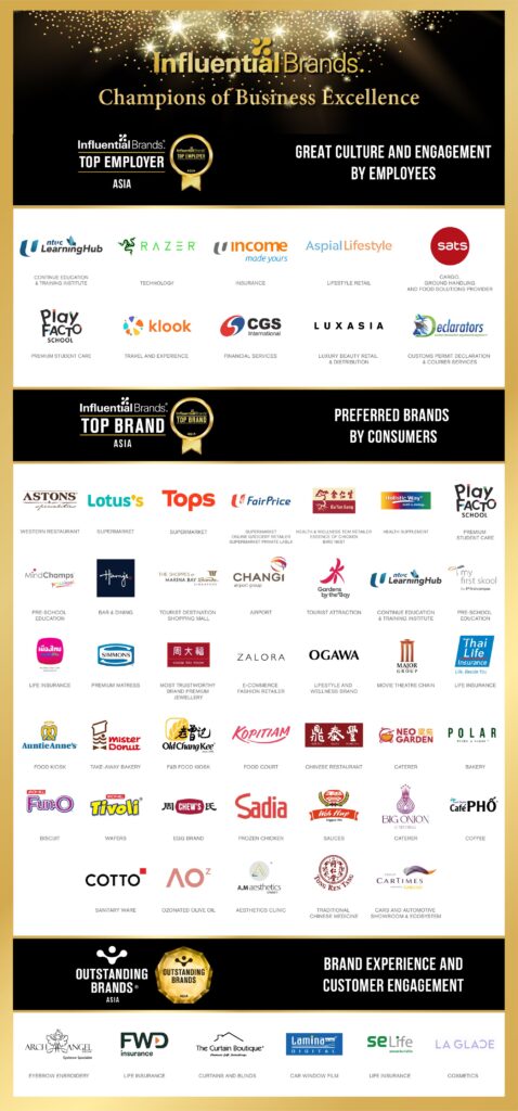 มร. จอร์จ โรดิกัส กรรมการผู้จัดการ อินฟลูเอ็นเชี่ยล แบรนด์ ประเทศสิงคโปร์ กล่าวว่า “เรามีความยินดีเป็นอย่างยิ่งที่ได้ยกย่องผู้บริหารระดับ C-suite ในฐานะเป็นผู้นําที่มีความโดดเด่นที่พร้อมปรับโมเดลธุรกิจใหม่ๆ นอกจากนี้เรายังยกย่องแบรนด์ชั้นนำที่มีความโดดเด่นในการสร้างความพึงพอใจ และได้รับความไว้วางใจระดับสูงจากผู้บริโภค และสุดท้ายคือรางวัลสุดยอดนายจ้างที่เป็นผลสำเร็จของความพยายามขององค์การต่างๆ จากการนำแนวปฏิบัติด้านทรัพยากรบุคคลที่ดีที่สุดไปดำเนินการจนสามารถสร้างวัฒนธรรมองค์กรอันยอดเยี่ยม เราหวังเป็นอย่างยิ่งว่าการจัดงานครั้งนี้จะสร้างความสัมพันธ์อันแข็งแกร่งให้แก่ผู้นำในแวดวงธุรกิจของเอเชียในปีนี้ และปีต่อๆ ไป”