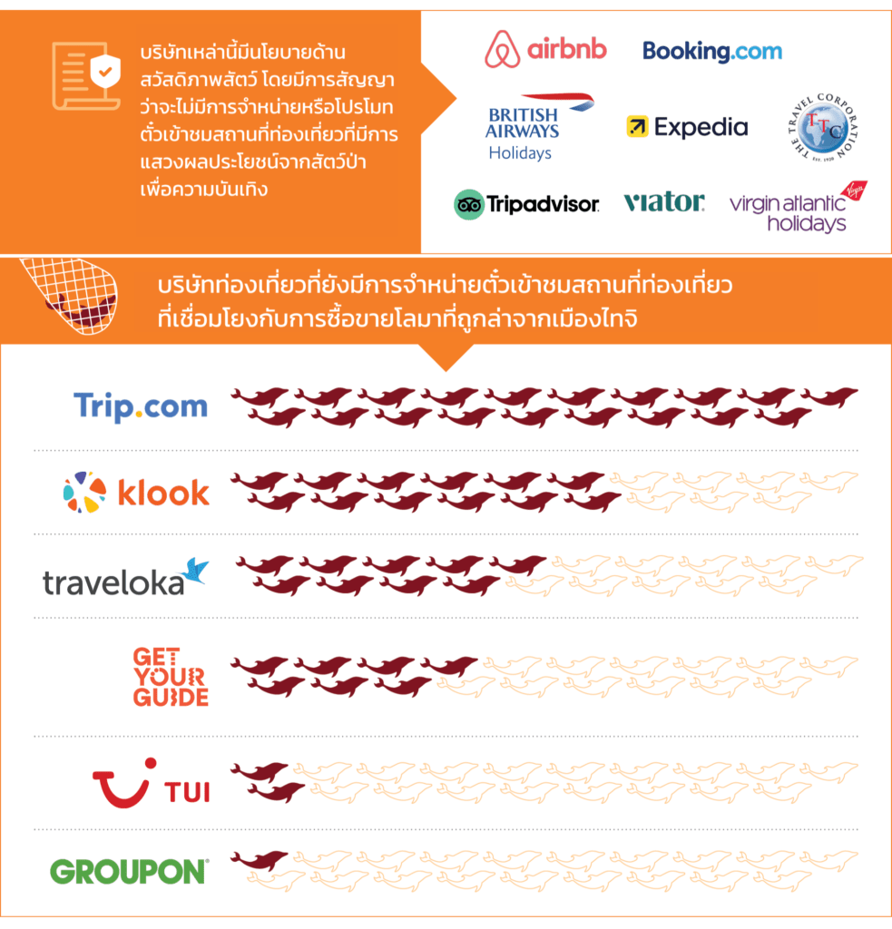 องค์กรพิทักษ์สัตว์โลก (World Animal Protection) เผยรายงานความเชื่อมโยงระหว่างอุตสาหกรรมท่องเที่ยวกับกิจกรรมล่าโลมาที่เมืองไทจิ ประเทศญี่ปุ่น ซึ่งขึ้นชื่อว่าเป็นแหล่งสังหารหมู่โลมาหลายร้อยตัวต่อปี จากข้อมูลพบว่า นอกจากจะมีการนำเนื้อโลมาไปเป็นอาหารแล้ว โลมาบางส่วนยังถูกจับและส่งต่อไปยังสวนน้ำ หรือตามสถานที่ท่องเที่ยวต่างๆ ทั่วโลก และที่น่าสนใจคือ มีแพลตฟอร์มท่องเที่ยวเจ้าดังจำนวน 6 แห่ง ได้แก่ Trip.com, Klook, Traveloka, GetYourGuide, TUI  และ Groupon เปิดขายบัตรท่องเที่ยวไปยังสถานที่เหล่านั้น รายงานฉบับนี้ระบุสถานที่ท่องเที่ยวชมโลมา 107 แห่งใน 17 ประเทศทั่่วโลก ไม่ว่าจะเป็นจีน เวียดนาม ไต้หวัน เกาหลีใต้ รวมทั้งประเทศไทย ซึ่งมีความเชื่อมโยงกับโลมาที่ถูกล่ามาจากเมืองไทจิ นอกจากนี้ยังพบว่า อุตสาหกรรมท่องเที่ยวโลมาทั่วโลกเป็นตัวขับเคลื่อนเศรษฐกิจที่กระตุ้นให้เกิดการล่าโลมาไทจิจากแหล่งที่อยู่อาศัยตามธรรมชาติ
