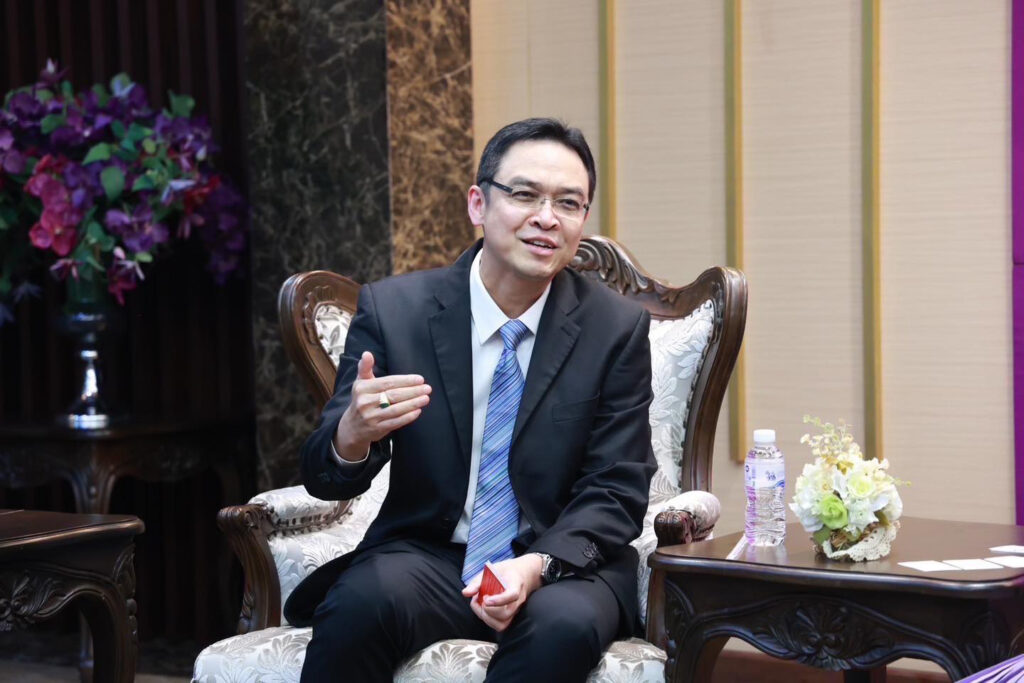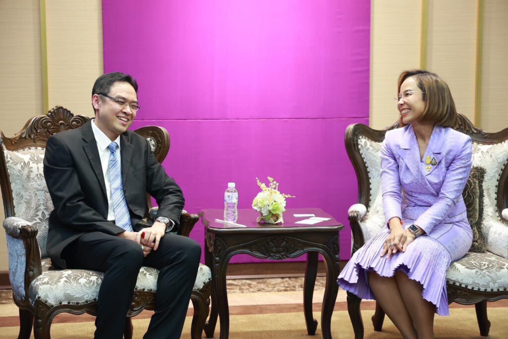 นายมนตรี นิธิกุล ประธานเจ้าหน้าที่บริหารธุรกิจปูนซีเมนต์ของประเทศไทย ภายใต้ บริษัท ปูนซีเมนต์นครหลวง จำกัด (มหาชน) (ที่ 4 จากขวา) พร้อมด้วย นางสาวสุจินตนา วีระรัตน์ ประธานเจ้าหน้าที่บริหาร บริษัท อินทรี อีโคไซเคิล จำกัด บริษัทในกลุ่มบริษัท ปูนซีเมนต์นครหลวง (ที่ 4 จากซ้าย) และคณะผู้บริหาร บริษัท ปูนซีเมนต์นครหลวง จำกัด (มหาชน) เข้าพบนางสาวพิมพ์ภัทรา วิชัยกุล รัฐมนตรีว่าการกระทรวงอุตสาหกรรม (ที่ 3 จากขวา) เพื่อรายงานให้ทราบถึงความมุ่งมั่นในการเดินหน้าสู่เป้าหมายการปลดปล่อยก๊าซเรือนกระจกเป็นศูนย์ โดยได้มีการผลิตปูนซีเมนต์คาร์บอนต่ำ หรือ “ปูนซีเมนต์ไฮดรอลิก” มาตรฐาน มอก. 2594 ในกลุ่ม INSEE แล้ว ซึ่งถูกกำหนดเป็นแนวทางลดก๊าซเรือนกระจกที่มีศักยภาพสูง ตามแผนการลดก๊าซเรือนกระจกของประเทศไทย ในสาขากระบวนการทางอุตสาหกรรมและการใช้ผลิตภัณฑ์ โดยมี นายวันชัย พนมชัย เลขาธิการสำนักงานมาตรฐานผลิตภัณฑ์อุตสาหกรรม (ที่ 1 จากขวา) ณ สำนักงานปลัดกระทรวงอุตสาหกรรม