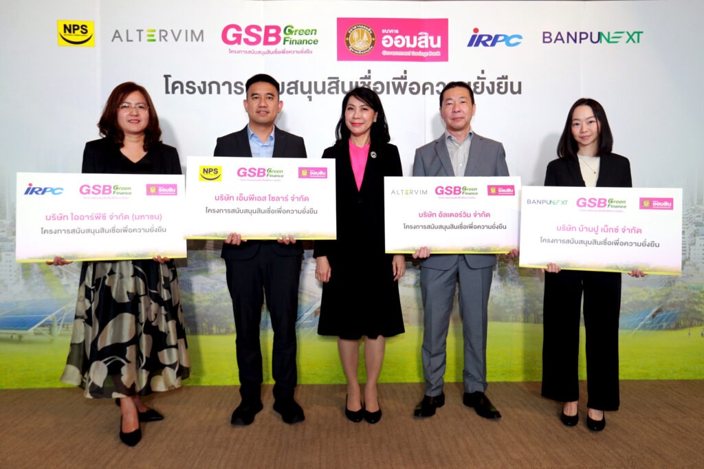 โดยล่าสุด ธนาคารออมสินได้ปล่อยสินเชื่อตามโครงการสนับสนุนสินเชื่อเพื่อความยั่งยืนให้แก่ผู้ประกอบการขนาดใหญ่ ซึ่งเป็นผู้ที่ดำเนินธุรกิจอย่างมีความรับผิดชอบต่อสิ่งแวดล้อม สังคม ภายใต้หลักธรรมาภิบาลที่ดี จำนวน 4 ราย วงเงินรวม 7,850 ล้านบาท ประกอบด้วย บริษัท ไออาร์พีซี จำกัด (มหาชน) วงเงิน 5,000 ล้านบาท เพื่อลงทุนในโครงการปรับปรุงประสิทธิภาพโรงกลั่น และปรับปรุงคุณภาพน้ำมันดีเซลตามมาตรฐานยูโร 5 ที่จะช่วยลดปัญหามลภาวะฝุ่นละออง PM 2.5 เป็นไปตามนโยบายสู่การเป็นโรงงานสีเขียว (Eco Factory) บริษัท อัลเตอร์วิม จำกัด วงเงิน 1,300 ล้านบาท เพื่อลงทุนในโครงการติดตั้งระบบ Solar ภายใต้สัญญาซื้อขายไฟฟ้า (Private PPA) มุ่งเน้นการจัดการพลังงานให้กับลูกค้าในเครือซีพีเป็นหลัก เป็นการยกระดับศักยภาพการแข่งขันและพัฒนาอย่างยั่งยืน รวมถึงลดการปล่อยคาร์บอน และสร้างโอกาสคาร์บอนเครดิต ส่งเสริมการใช้พลังงานสะอาด บริษัท เอ็นพีเอส โซลาร์ จำกัด วงเงิน 900 ล้านบาท ลงทุนและพัฒนาโครงการโรงไฟฟ้าพลังงานแสงอาทิตย์บนทุ่นลอยน้ำ (Solar Floating) เพื่อจำหน่ายให้แก่ลูกค้าในสวนอุตสาหกรรม 304 ปราจีนบุรี สนับสนุนการใช้ไฟฟ้าพลังงานสีเขียวแก่กลุ่มลูกค้าอุตสาหกรรม และ บริษัท บ้านปู เน็กซ์ จำกัด วงเงิน 650 ล้านบาท เพื่อเป็นเงินลงทุนในโครงการติดตั้งระบบโซลาร์ของบริษัท หรือบริษัทในเครือ ภายใต้สัญญาซื้อขายไฟฟ้า (Private PPA) มุ่งสู่ความเป็นกลางทางคาร์บอน (Carbon Neutral) ภายในปี 2030 และการปล่อยก๊าซเรือนกระจกสุทธิเป็นศูนย์ (Net Zero) ภายในปี 2050