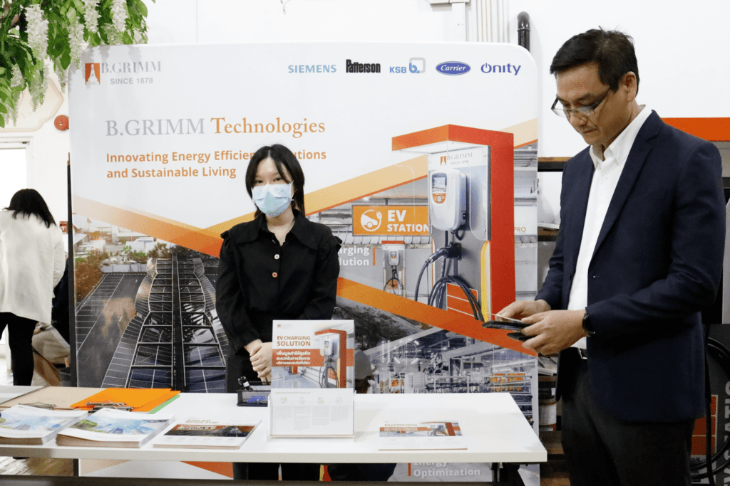 นอกจากนี้ ภายในงานยังมีการจัดแสดงโซลูชันการชาร์จรถยนต์ไฟฟ้าแบบครบวงจร (Integrated EV Charging Solutions) ของ บี.กริม เทคโนโลยี ซึ่งครอบคลุมทุกกระบวนการดำเนินงาน ตั้งแต่วางแนวคิดการออกแบบ การประเมินความคุ้มค่าของโครงการ กระบวนการจัดซื้อที่เป็นไปตามความต้องการเฉพาะของผู้ประกอบการ การติดตั้งที่เป็นไปตามมาตรฐานความปลอดภัยสูงสุด ตลอดจนบริการหลังการขาย เพื่ออำนวยความสะดวกแก่ผู้ประกอบการอาคารเชิงพาณิชย์ โรงแรม และโรงงานอุตสาหกรรม พร้อมทางเลือกในการใช้พลังงานสะอาดจากระบบพลังงานแสงอาทิตย์ และความยืดหยุ่นในรูปแบบการลงทุนที่สอดรับกับเงื่อนไขของแต่ละธุรกิจ