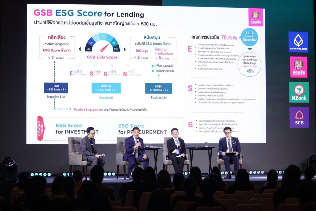 นายวิทัย รัตนากร ผู้อำนวยการธนาคารออมสิน ร่วมเสวนา Green Finance ภายในงาน Unlocking Thailand – Green Finance & AI Economy จัดโดย Thairath Money ในโอกาสครบรอบ 1 ปี ร่วมกับ ดร.กอบศักดิ์ ภูตระกูล กรรมการรองผู้จัดการใหญ่และเลขานุการ บริษัท ธนาคารกรุงเทพ จำกัด (มหาชน) และ ดร.กรินทร์ บุญเลิศวณิชย์ รองกรรมการผู้จัดการ ธนาคารกสิกรไทย เพื่อเป็นเวทีนำเสนอบทบาทของภาคการเงินในการสนับสนุนการเปลี่ยนผ่านสู่ธุรกิจที่เป็นมิตรกับสิ่งแวดล้อม พร้อมแนวทางการจัดทำ Climate Transition Plan เพื่อบรรลุเป้าหมาย Net Zero ในอนาคต โดยได้ร่วมแลกเปลี่ยนการดำเนินงานของธนาคารออมสินตลอด 4 ปีที่ผ่านมาในบทบาทการเป็นธนาคารเพื่อสังคม ที่เดินหน้าสร้างคุณค่าร่วม CSV ในการช่วยเหลือสังคม ซึ่งทำให้ธุรกิจเติบโตไปพร้อมกับการแก้ปัญหา และมุ่งเน้นในเรื่องสิ่งแวดล้อมเป็นปัจจัยสำคัญ โดยขับเคลื่อนสู่ Net Zero ในปี 2050 ผ่านการให้สินเชื่อและการลงทุน รวมถึงการลดดอกเบี้ย อาทิ สินเชื่อ Green Products ครอบคลุมลูกค้าทุกกลุ่ม รายย่อย Smes และธุรกิจขนาดใหญ่ อาทิ EV Supply Chain, Solar rooftop สำหรับบ้าน ซึ่งได้มีการปล่อยสินเชื่อไปแล้ว 80,000 ล้านบาท รวมถึงสนับสนุนการจัดจำหน่าย ESG Bond วงเงินรวมกว่า 50,000 ล้านบาท นอกจากนี้ธนาคารมีการนำเอา ESG Score ประกอบการพิจารณาปล่อยสินเชื่อธุรกิจขนาดใหญ่ วงเงินมากกว่า 500 ล้านบาท โดยได้อนุมัติโครงการสนับสนุนสินเชื่อเพื่อความยั่งยืน พร้อมเงื่อนไขพิเศษลดอัตราดอกเบี้ยเงินกู้สำหรับกิจการที่มีคะแนน ESG ดี มีการทำธุรกิจอย่างใส่ใจและคำนึงถึงสังคม ชุมชน และสิ่งแวดล้อม ที่ผ่านมาได้ปล่อยสินเชื่อผ่าน ESG Score ไปแล้วมากกว่า 100,000 ล้านบาท นอกจากนี้ภายในงานมีผู้นำองค์กรจากภาคเอกชนร่วมเสวนา ณ รร.โอกุระ เพรสทีจ กรุงเทพ เมื่อวันที่ 30 พฤษภาคม 2567