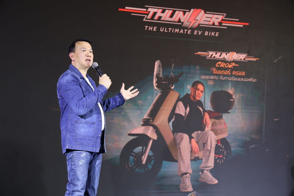 พร้อมกันนี้ เรายังเดินหน้าบุกตลาดมอเตอร์ไซค์ไฟฟ้าอย่างต่อเนื่อง ด้วยการเปิดตัวรถมอเตอร์ไซค์ไฟฟ้ารุ่นใหม่ล่าสุด THUNDER : The Ultimate EV Bike สุดยอดนวัตกรรมมอเตอร์ไซค์ไฟฟ้า โดยเราได้ออกแบบและพัฒนาโครงสร้างรถให้มีจุดศูนย์ถ่วง และการกระจายน้ำหนักของตัวรถอย่างมีเสถียรภาพ พร้อมโครงสร้าง “MPF Mark II” ที่แข็งแกร่ง ตอบสนองทุกไลฟ์สไตล์ สามารถขับขี่ได้ทุกสภาพถนน เทียบเท่ากับมอเตอร์ไซต์ที่ใช้น้ำมัน ชาร์จแบตเตอร์รี่เร็วขึ้นกว่า 3 เท่า มีให้เลือก 2 รุ่น คือ THUNDER ราคาเริ่มต้น 59,000 บาท และ รุ่น THUNDER Croz ราคาเริ่มต้น 64,500 บาท โดยเรามีการรับประกันโครงสร้าง 10 ปี ,แบตเตอรี่ 5 ปี ,Body Parts 3 ปี ,ECU และมอเตอร์ไฟฟ้า 2 ปี ,หน้าจอและชาร์จเจอร์ 1 ปี หรือ 50,000 กิโลเมตร พร้อมบริการหลังการขายด้วยทีมช่างมืออาชีพรับประกันอะไหล่แท้และราคาเดียวกันทั่วประเทศ