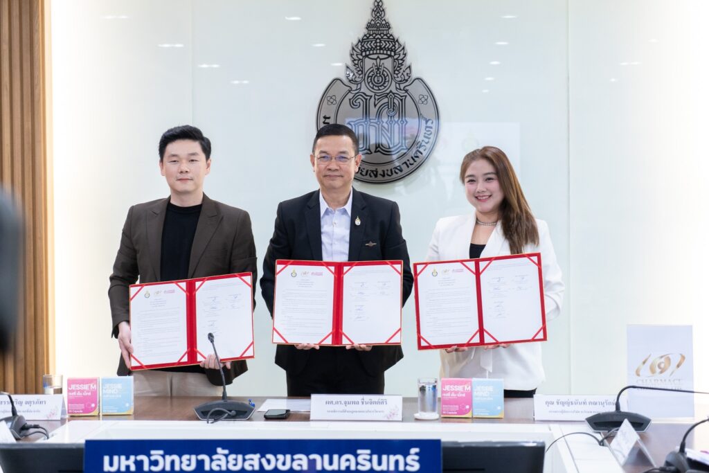 มหาวิทยาลัยสงขลานครินทร์ จับมือกับบริษัท เจสซี่มัม จำกัด และบริษัท ชาร์แมช คอสเมด จำกัด ร่วมพัฒนางานวิจัยและนวัตกรรม ต่อยอดสู่ผลิตภัณฑ์ที่มีคุณค่า พร้อมส่งเสริมให้เศรษฐกิจของประเทศเติบโตอย่างยั่งยืน