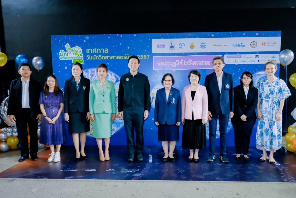 เมื่อวันที่ 11 มิถุนายน 2567 นายศานนท์ หวังสร้างบุญ รองผู้ว่าราชการกรุงเทพมหานคร เป็นประธานเปิดงาน “เทศกาลวันนักวิทยาศาสตร์น้อย” ประจำปี 2567” ภายใต้หัวข้อ “การผจญภัยในห้วงอวกาศ” พร้อมด้วย คุณหญิงสุมณฑา พรหมบุญ ประธานโครงการบ้านนักวิทยาศาสตร์น้อย และดร.กรรณิการ์ เฉิน รองผู้อำนวยการองค์การพิพิธภัณฑ์วิทยาศาสตร์แห่งชาติ (อพวช.) หรือ NSM เพื่อเปิดพื้นที่การเรียนรู้ให้กับเด็กปฐมวัยผ่านเรื่องราวของดวงดาวและอวกาศ ที่จะชวนทุกคนสร้างสรรค์จินตนาการไปด้วยความสนุกสนาน โดยมีนางฤทัย จงสฤษดิ์ ผู้อำนวยการฝ่ายอาวุโส ฝ่ายวิชาการ หลักสูตร และสื่อการเรียนรู้ สำนักงานพัฒนาวิทยาศาสตร์และเทคโนโลยีแห่งชาติ (สวทช.) ดร.สุพรรณี ชาญประเสริฐ ผู้ช่วยผู้อำนวยการสถาบันส่งเสริมการสอนวิทยาศาสตร์และเทคโนโลยี (สสวท.) นางสาวพรเพ็ญ ทองสิมา ผู้เชี่ยวชาญด้านประเมินผลการจัดการศึกษาขั้นพื้นฐาน สำนักงานคณะกรรมการการศึกษาขั้นพื้นฐาน (สพฐ.) ผศ.ดร.สุวรรณ พลายพิชิต ผู้ช่วยคณบดีฝ่ายสารสนเทศและกิจการพิเศษ คณะวิทยาศาสตร์ มหาวิทยาลัยศรีนครินทรวิโรฒ คุณคาโรลีน ลิงค์ ประธานบริษัท บี.กริม จอยน์ เว็นเจอร์ โฮลดิ้ง จำกัด และประธานร่วมบริษัท บี.กริม ฟาร์มา และนางสาวสมพร สิริพิทักษ์เดช หัวหน้างานศูนย์สื่อสาธารณะเพื่อเด็กและครอบครัว ไทยพีบีเอส ร่วมแถลงข่าวฯ ที่จัตุรัสวิทยาศาสตร์ อพวช. ณ เดอะ สตรีท รัชดา กรุงเทพฯ