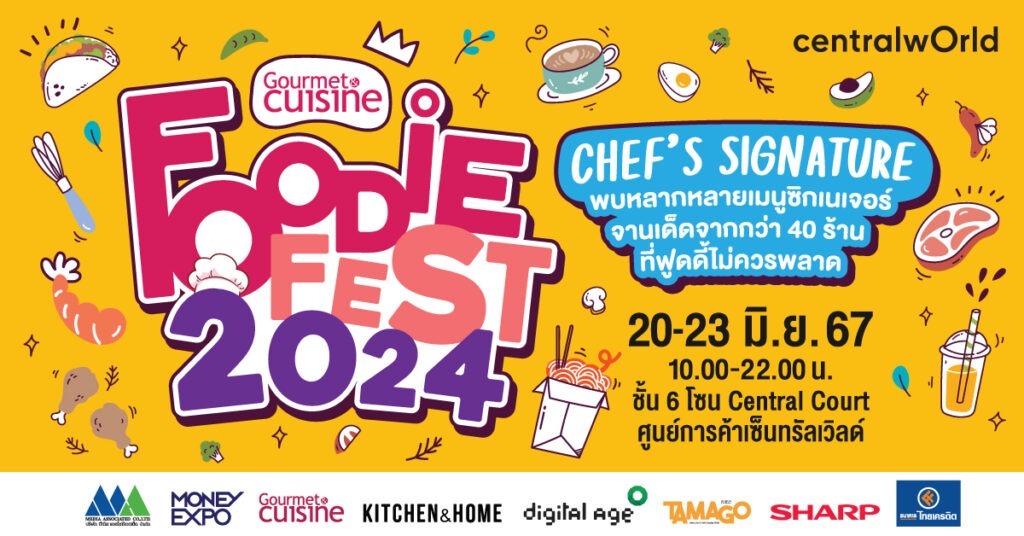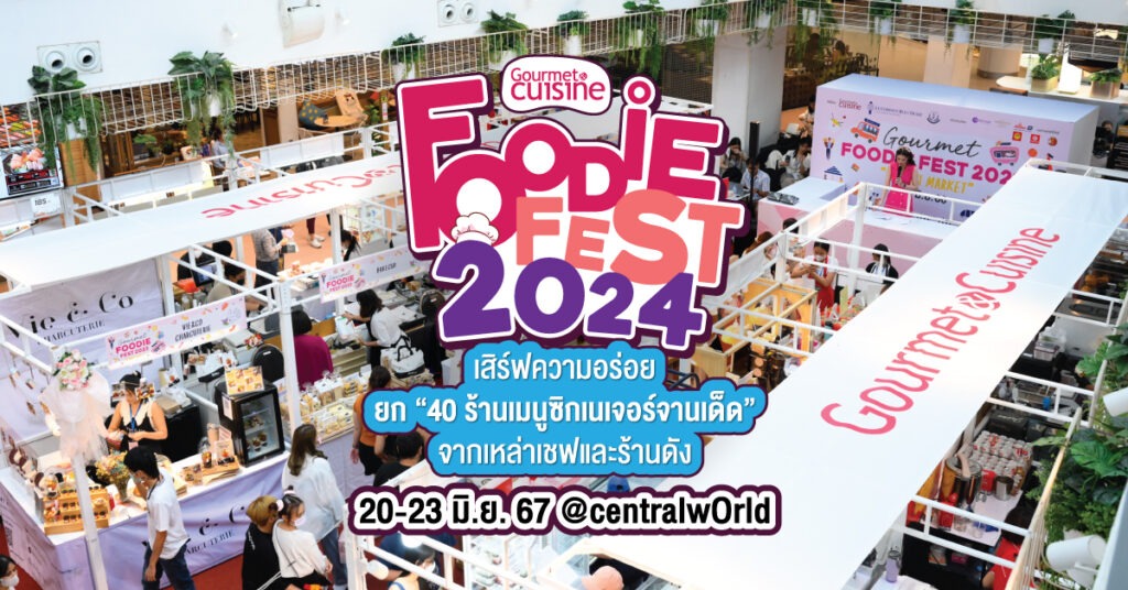 เปิดพิกัดความอร่อยแบบจัดเต็มให้เหล่าฟู้ดดี้กันอีกครั้งในงาน “Gourmet Foodie Fest 2024”  ยกขบวน 40 ร้านเมนูซิกเนเจอร์จานเด็ด และเมนูยอดฮิตติดดาวประจำร้าน ทั้งอาหารคาวหวาน ขนม เบเกอรี่ เครื่องดื่มสุดพรีเมียมจากร้านเชฟดัง และร้านอร่อยยอดฮิตในโซเชียล มาให้เลือกช้อป ชิม ชิล ในที่เดียว พร้อมร่วมสนุกกับกิจกรรมเวิร์กช็อปฟรีตลอดงาน ในระหว่างวันที่ 20-23 มิถุนายน 2567 เวลา 10.00-22.00 น. ที่ Central Court ชั้น 6 ศูนย์การค้าเซ็นทรัลเวิลด์