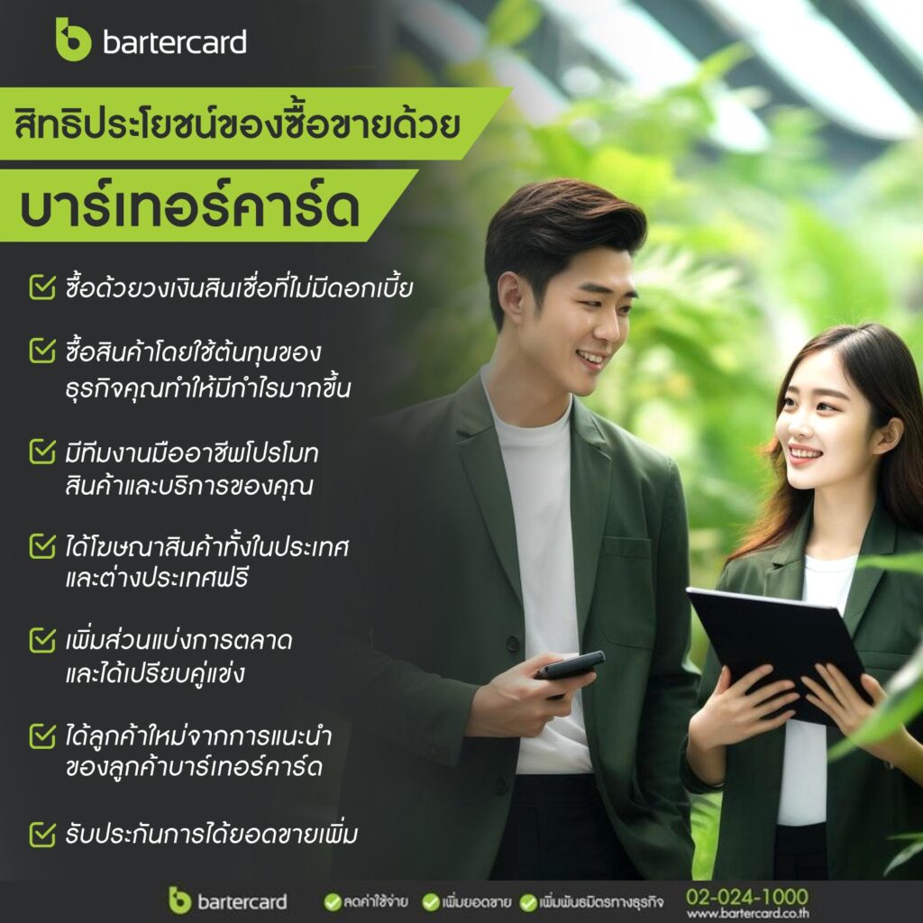 สำหรับผู้ประกอบการที่สนใจอยากให้บาร์เทอร์คาร์ด เป็นตัวช่วยในการต่อยอดธุรกิจ สามารถสมัครสมาชิกกับ Bartercard หรือติดต่อสอบถามข้อมูลเพิ่มเติมได้ที่ โทร. 02-024-1000 และ Facebook: Bartercard Thailand หรือ เว็บไซต์ https://www.bartercard.co.th