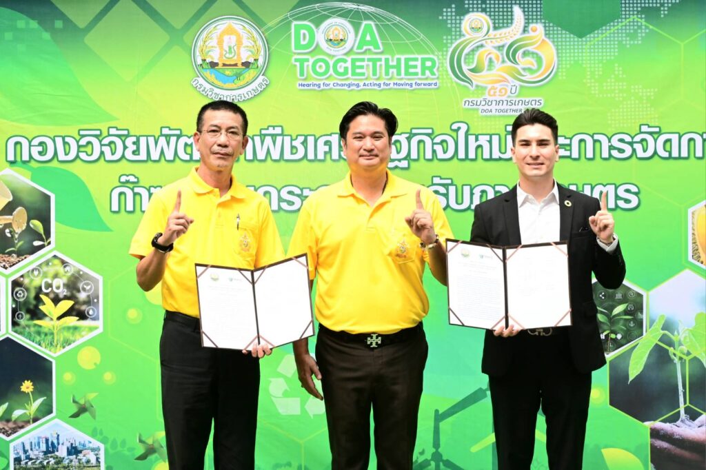 อธิบดีกรมวิชาการเกษตร  กล่าวว่า  นอกจากจัดตั้ง กองวิจัยพัฒนาพืชเศรษฐกิจใหม่ ฯกรมวิชาการเกษตรยังได้ลงนามบันทึกข้อตกลง ร่วมกับ องค์การบริหารจัดการก๊าซเรือนกระจก (อบก.) เพื่อส่งเสริมการดำเนินการตรวจรับรองประเมินโครงการ รับรองการคำนวณคาร์บอนเครดิตทางการเกษตรและป่าไม้ ดูแลการปล่อยก๊าซเรือนกระจกภายใต้กลไกการพัฒนาที่สะอาด และประเมินคาร์บอนเครดิตในภาคการเกษตร โดยกรมวิชาการเกษตร และ อบก. จะขยายผลจากการทำ MOU นำร่องใน 3 โครงการ คือ การผลักดันต้นแบบ การจัดทำคาร์บอนเครดิตภาคการเกษตร ให้สามารถซื้อ -ขาย ได้จริง ในพืชเศรษฐกิจ การวิจัยคาร์บอนฟุตพรินท์ในพืชเศรษฐกิจ หากกรมวิชาการเกษตรเป็นหน่วยงานรับรองได้แล้วจะลดค่าใช้จ่ายในการจ้างที่ปรึกษาสำหรับเกษตรกร หรือ ผู้ประกอบการที่สนใจ  เนื่องจากกรมวิชาการเกษตรเป็นหน่วยงานตรวจรับรองจึงสามารถเป็นที่ปรึกษาในการจัดท่าเอกสาร และมี แพลตฟอร์ม ในการจัดท่าโครงการ T-VER ภาคเกษตร และมีความพร้อมในการให้บริการและรับรองคาร์บอนเครดิต