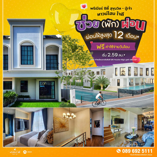 สำหรับโครงการที่เข้าร่วมแคมเปญนี้ ได้แก่ โครงการ พรีเมียร์ซิตี้ สุขุมวิท-ปู่เจ้า กับดีไซน์ waterfront house ในบรรยากาศรายล้อมด้วยสายน้ำและสวนร่มรื่นตลอดปี ออกแบบภายใต้แนวคิด The Passion of Neo – Classic Style ผสมผสานแนวคิดแบบวัฒนธรรมตะวันตกกับมนต์เสน่ห์ รูปแบบสถาปัตยกรรมที่ดูอบอุ่น หรูหรา ตอบโจทย์ทุกเจเนอเรชั่น เป็นส่วนตัวด้วยจำนวนยูนิตเพียง 271 ยูนิต มีแบบบ้านให้เลือก บ้านเดี่ยว ราคาเริ่มต้น 6.59 ล้านบาท และทาวน์โฮม หน้ากว้าง 4 เมตร และ 5 เมตร 2-3 ห้องนอน 1 ห้องเอนกประสงค์(แล้วแต่แบบบ้าน) ในราคาเริ่มต้นพิเศษสุดที่ 2.59 ล้านบาท โปร่งโล่งด้วยเพดานสูง 3 เมตร 2-3 ห้องน้ำ ที่จอดรถ 2 คัน ออกแบบและจัดสรรพื้นที เพื่อการใช้ชีวิตที่ลงตัว สิ่งอำนวยความสะดวกครบครัน คลับเฮ้าส์หรู 2 ชั้นสไตล์ยุโรป สระว่ายน้ำในร่ม ห้องออกกำลังกาย ห้องสันทนาการ พื้นที่ Co-Working space บ้านที่ใส่ใจ และให้ความสำคัญเรื่องความปลอดภัย เข้า-ออก โครงการด้วยระบบ Key Card Access เจ้าหน้าที่รักษาความปลอดภัย 24 ชม. ติดตั้ง CCTV รอบโครงการ ลงตัวด้วยการเดินทางที่สะดวกสบาย บนทำเล สุขุมวิท ปู่เจ้าสมิงพราย ง่ายทุกการเดินทาง ไม่ว่าจะรถส่วนตัว หรือรถสาธารณะ ใกล้สถานีรถไฟฟ้าช้างเอราวัณเพียง 5 นาที*
