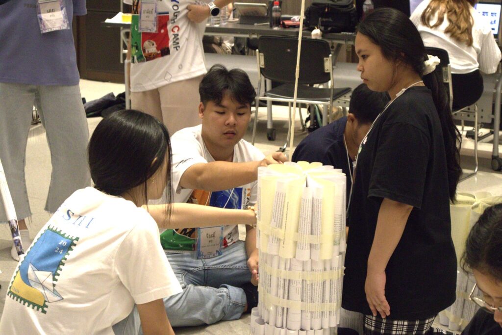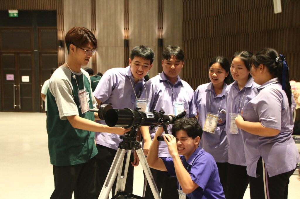 “สำหรับช่วงเช้า เราเน้นกลุ่มกิจกรรมวิชาการอย่างฐานมหัศจรรย์ ที่สร้างความสนใจสาขาวิชาในกลุ่มวิทย์-คณิตมากขึ้น รวมถึงมีกิจกรรมดาราศาสตร์ให้น้องๆ ได้ฝึกการใช้กล้องโทรทรรศน์และดูดาวด้วยตาเปล่าในพื้นที่จริง และกิจกรรมไฮไลท์ที่หลายคนสนใจกันมากคือ 4 ฐานปฏิบัติการทางวิทยาศาสตร์และคณิตศาสตร์ เพราะเราเข้าใจว่าในห้องเรียน น้องๆ อาจจะยังไม่มีโอกาสได้จับอุปกรณ์มากนัก แต่สำหรับค่ายนี้เราจัดเต็มกับกิจกรรมแล็บ เพื่อให้น้องๆ ทุกคนได้ทดลองกันอย่างเต็มที่ เช่นได้ลองทำสไลด์ส่องกล้องดูเนื้อเยื่อเอง พร้อมทั้งเราได้นำนวัตกรรมใหม่อย่างกล้องจุฬาสมาร์ทเลนส์ที่คล้ายกล้องจุลทรรศน์ให้น้องๆ ได้ทดลองใช้เป็นครั้งแรก นอกจากนี้ยังมีไฮไลท์ที่เราตั้งใจเพิ่มมาปีนี้ให้สอดคล้องกับสถานการณ์ปัจจุบันที่เราไม่ได้เผชิญแค่โลกร้อนเท่านั้น แต่กำลังเข้าสู่ภาวะโลกเดือด เพื่อสร้างความตระหนักถึงประเด็นนี้ จึงนำการทดลองเชิงปฏิบัติการในการวัดการกักเก็บคาร์บอนในต้นไม้เข้ามาในค่าย เพื่อสร้างแรงบันดาลใจให้น้องๆ มีส่วนช่วยในการลดคาร์บอนในชีวิตประจำวัน สิ่งที่เราเห็นความเปลี่ยนแปลงได้อย่างชัดเจนเลยคือพอน้องๆ เรียนเรื่องนี้แล้ว ทุกคนพยายามไม่ทานข้าวเหลือเพราะตระหนักเรื่อง Food Waste และพยายามปิดไฟทุกครั้งที่ไม่ใช้งาน ทำให้เห็นว่าสิ่งที่เราพยายามสอดแทรกค่อยๆ ซึมซับเข้าหาน้องรุ่นต่อไปจริงๆ”