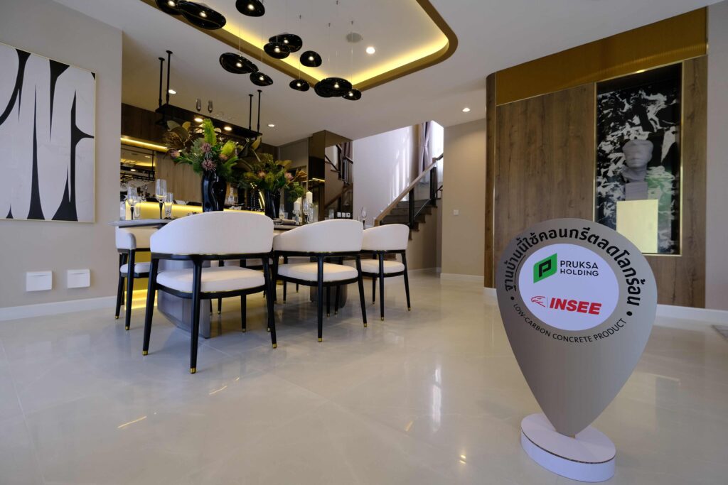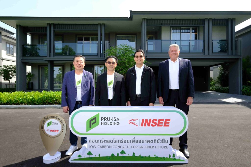“บ้านภายใต้แบรนด์พฤกษาเป็นบ้านคาร์บอนต่ำ นอกจากการก่อสร้างโครงการโดยเลือกใช้ปูนรักษ์โลก จากปูนซีเมนต์อินทรีเพชร Easy Flow พฤกษายังเป็น ผู้พัฒนาอสังหาริมทรัพย์รายแรกที่ใช้คาร์บอนเคียว ซึ่งเป็นเทคโนโลยีสีเขียวในการผลิตแผ่นพรีคาสท์คาร์บอนต่ำในการสร้างบ้าน โดยนำคาร์บอนไดออกไซด์ที่เป็นตัวการสำคัญในการทำลายชั้นบรรยากาศมาฉีดกักเก็บเข้าไปในขั้นตอนการผสมคอนกรีต จึงช่วยลดการปล่อยคาร์บอนและก๊าซเรือนกระจกอื่น ๆ ขณะเดียวกันยังสามารถลดปริมาณการใช้ซีเมนต์ลงร้อยละ 5 แต่ยังคงประสิทธิภาพความแข็งแกร่งได้ตามมาตรฐาน และเมื่อเร็ว ๆ นี้ องค์การบริหารจัดการก๊าซเรือนกระจก ได้ประกาศรับรองคาร์บอนฟุตพริ้นท์ให้กับ อินโน พรีคาสท์ โดยได้รับฉลากลดคาร์บอนฟุตพริ้นท์ Carbon Footprint Reduction (CFR) หรือฉลากลดโลกร้อน ซึ่งถือเป็นพรีคาสท์รายแรก รายเดียว ของอุตสาหกรรมในประเทศไทยที่ได้การรับรองอีกทั้งยังมีวัสดุก่อสร้างอื่น ๆ ด้วยเช่นกันที่ได้รับฉลากคาร์บอนฟุตพริ้นท์ของผลิตภัณฑ์ Carbon Footprint of Product (CFP)