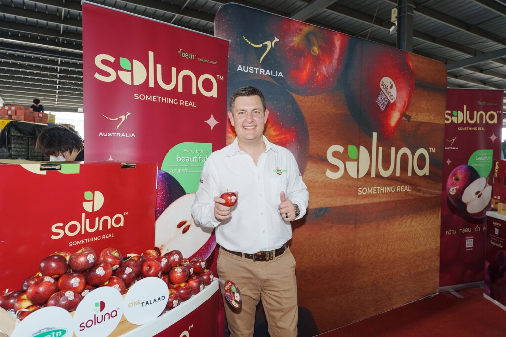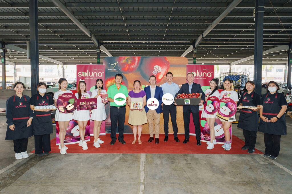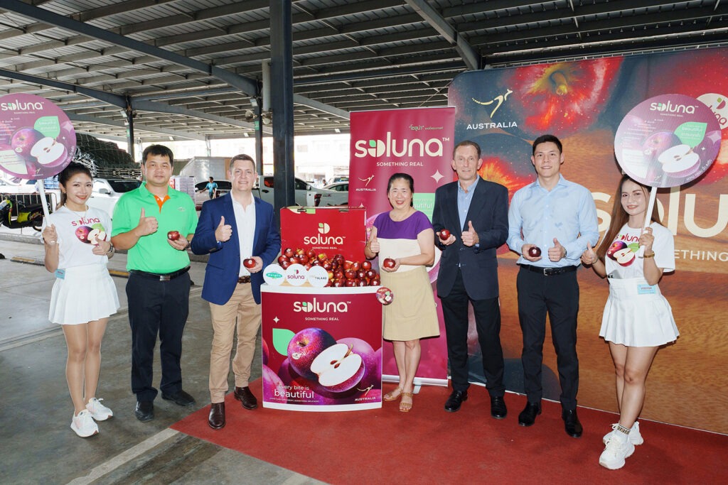 คุณจักรพงษ์ เลียบศิรินนท์  ผู้ช่วยผู้อำนวยการใหญ่ บริษัท ไทย แอ็กโกร เอ็กซเชนจ์ จำกัด (ตลาดไท) ต้อนรับ คุณเอสเธอร์​ ซัน, ที่ปรึกษา (การพาณิชย์) และข้าหลวงพาณิชย์​,สำนักงานการพาณิชย์และการลงทุนออสเตรเลีย ประจำประเทศไทย (ออสเทรด) พร้อมด้วย คุณฌอน เอนเกลเบรชท์ ผู้จัดการฝ่ายขายและการตลาด ประเทศออสเตรเลีย บริษัทดับเบิลยูเอ ฟาร์มไดเร็ค จำกัด (ดูแลการตลาด โซลูน่า แอปเปิล),  คุณลอยด์ วิลเลียมส์  หัวหน้าฝ่ายจัดหาผักและผลไม้ ซีพีเอฟ ออสเตรเลีย (ผู้ส่งออก), คุณพีราวิชญ์ ภัทรประสิทธิ์​ กรรมการฝ่ายพัฒนาธุรกิจ การลงทุน และ การค้า วัน ตลาด คอร์ปอเรชั่น (ผู้นำเข้า) ร่วมกันลงพื้นที่ เพื่อแนะนำข้อมูลสินค้า และเปิดตัวโซลูน่าแอปเปิล ให้แก่ กลุ่มผู้ค้าส่ง ที่อยู่ภายในพื้นที่ ตลาดผลไม้นานาชาติในตลาดไท